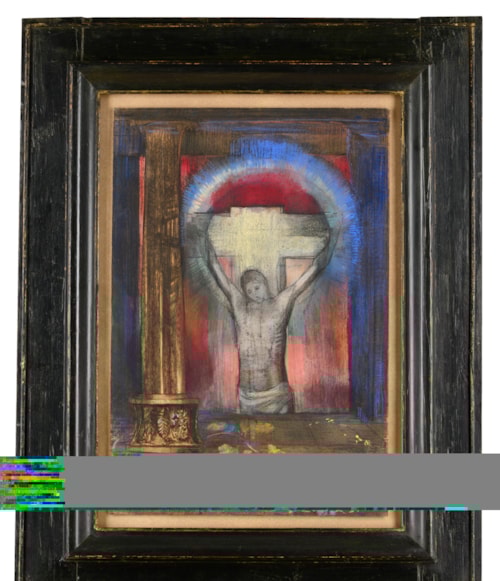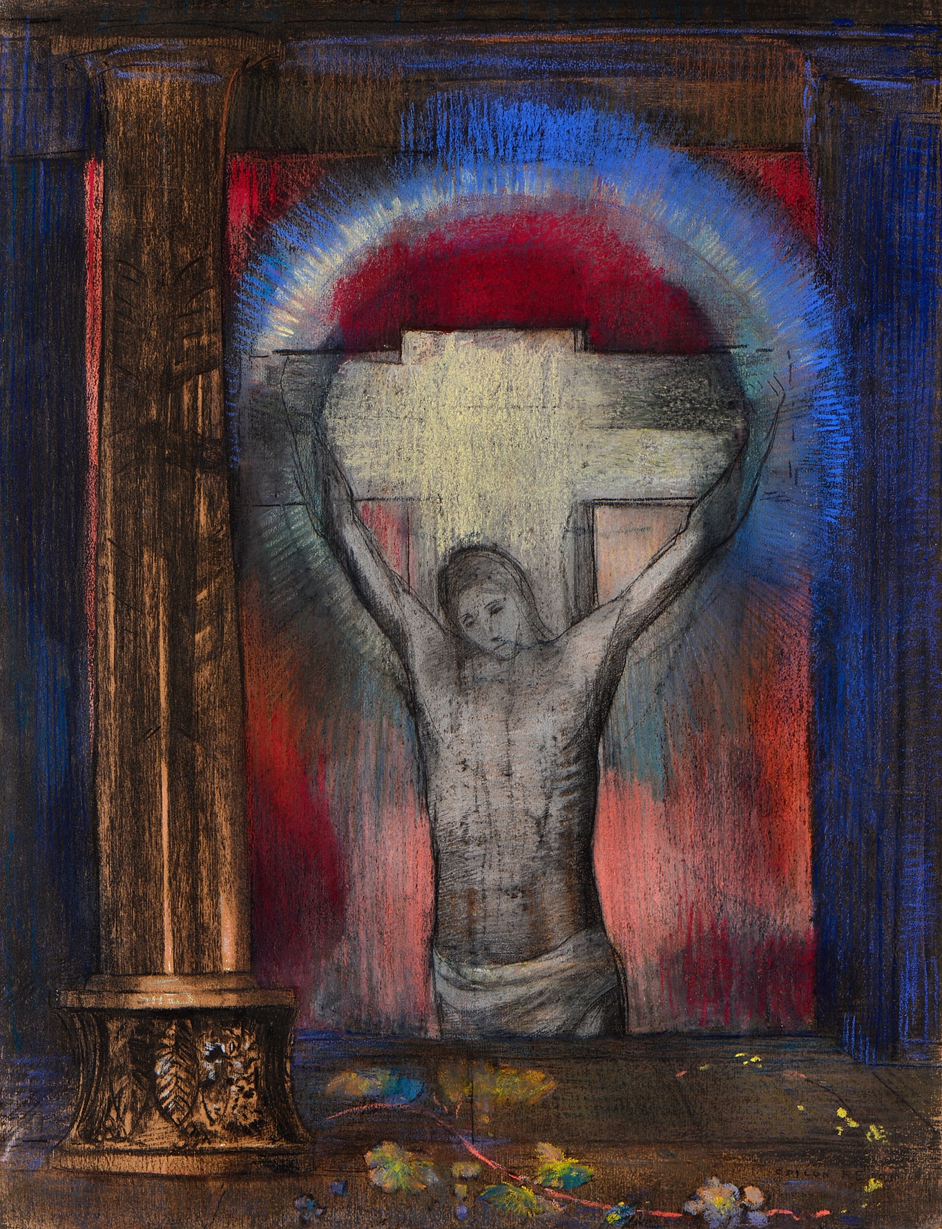 Among the handful of pastel drawings of Christ on the Cross by Redon is a large example, showing just the head and upper torso of Christ, in the Koninklijk Museum voor Schone Kunsten in Antwerp and a Crucifixion in the E. G. Bührle Collection in Zurich, as well as another, smaller pastel sold at auction in London in 1989.
