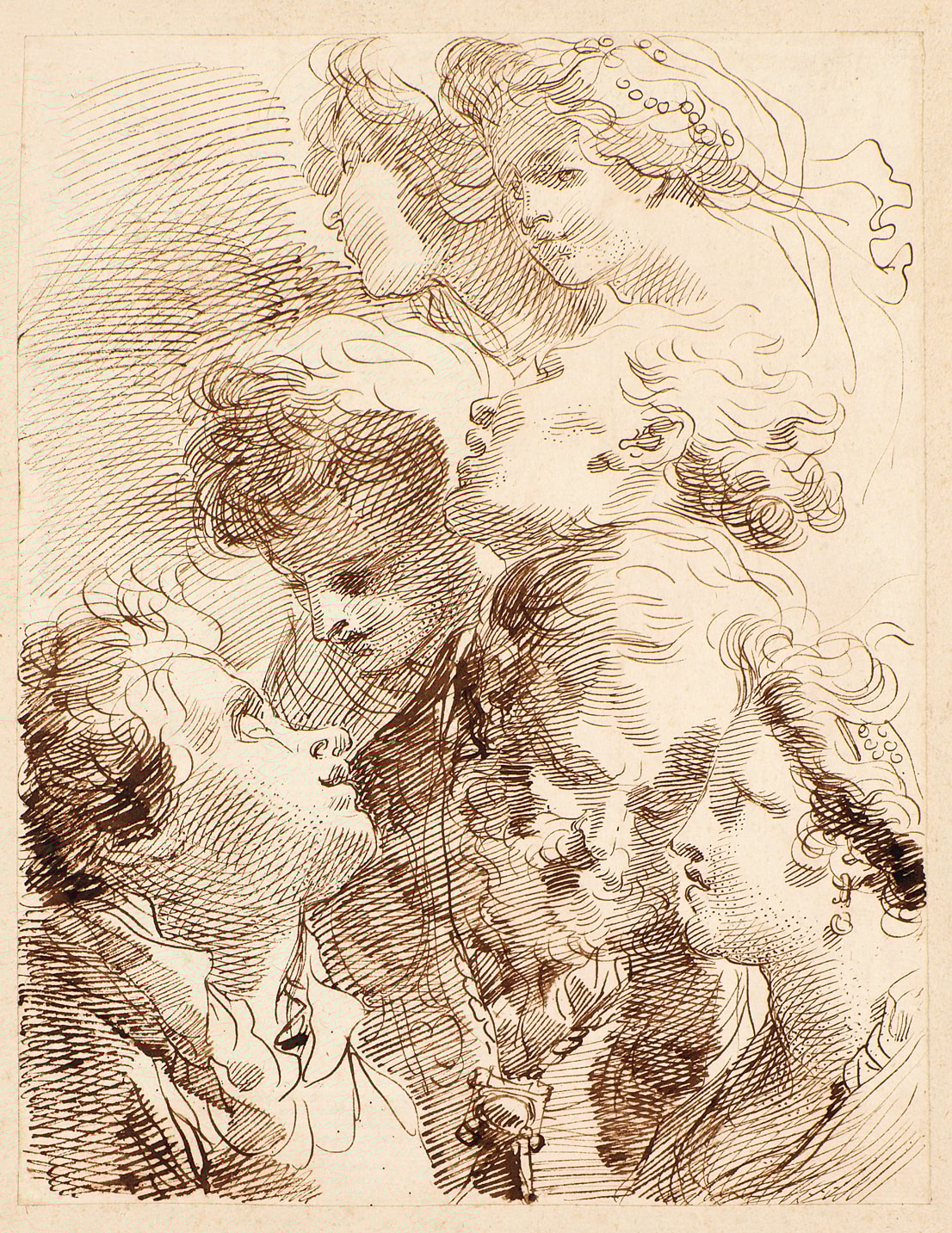 A fine example of the exquisite draughtsmanship of Mauro Gandolfi, this is one of a group of elaborate pen and ink drawings of studies of heads that were probably made as autonomous works of art for sale to collectors. Mauro is here carrying on a tradition begun by his father Gaetano Gandolfi, who produced a large number of finished pen and ink drawings of studies of heads.