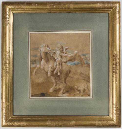 The present sheet is first recorded - valued at 2 zecchini - in a 1770 inventory of drawings for sale from the Casino di Sotto, part of the Villa di San Michele, near Novellara; the property of Maria Teresa Cybo-Malaspina (1725-1790), Duchess of Massa, Princess of Carrara and Crown Princess of Modena. In his biography of Lelio Orsi, published in 1892, the 19th century scholar Celestino Malagoli notes what must be the present sheet among the numerous drawings by the artist formerly in the Gonzaga collections in Novellara: ‘In the Gallery of the Gonzaga Princes there were...One hundred drawings in one hundred sheets of carta reale, partly in watercolour, partly in black chalk, and partly in pen, ornamented with carved and gilded frames, and partly in [frames of] ebony with crystal...One can admire in these drawings...Ganymede on a horse abducted by the eagle, in watercolour...’