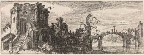 Jan van de Velde was a painter, printmaker and draughtsman, specializing in landscapes. Known as van de Velde the Younger to differentiate him from his father, the calligrapher Jan van de Velde the Elder, he was a pupil of the engraver Jacob Matham in Haarlem. His cousin was the landscape painter Esias van de Velde, and the two may have collaborated at some point. The young Jan joined the artist’s guild in Haarlem in 1614, and soon afterwards is thought to have travelled to Italy. By 1617, he had produced over a hundred landscape etchings. While much of his early work as a printmaker consisted of original compositions, from around 1618 onwards he seems to have preferred to reproduce, in print form, the work of such artists as Esias van de Velde, Pieter Molijn and Frans Hals.