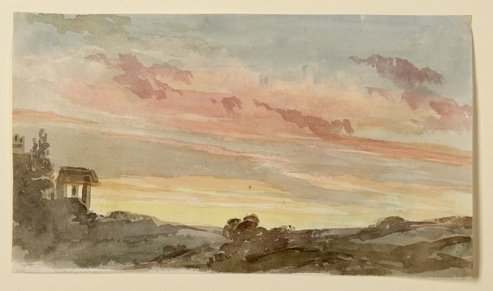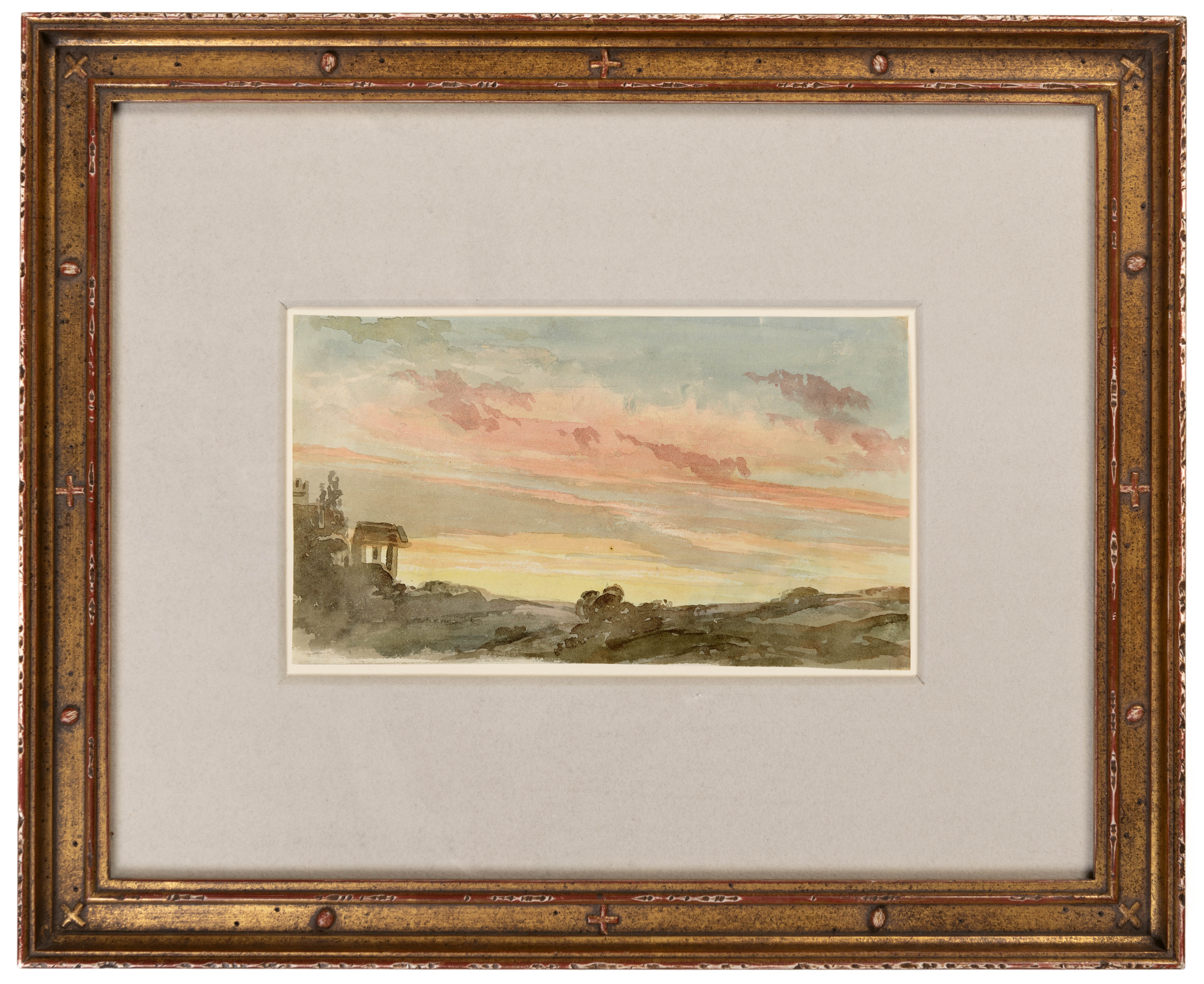 The present sheet was part of this second album, which was titled GANDY / VOL II / LANDSCAPE on the spine, and inscribed, by Richard Westmacott, Gandy’s sketches / I give / Maria on the inside cover. The album contained 97 watercolours of landscapes and studies from nature, variously inscribed and dated between the 15th of July 1820 and the 5th of July 1826. The album contained watercolour landscapes drawn in London and its outskirts, as well as various views in Surrey, East and West Sussex, and Kent on the southeast coast of England, as well as a number of studies of skies, clouds, sunsets, storms and nocturnal views. Many of the watercolours – which appear to have come from one or more sketchbooks used by the artist - were inscribed by Gandy with the location, date and time that the views were made, as well as the compass direction of the view chosen.