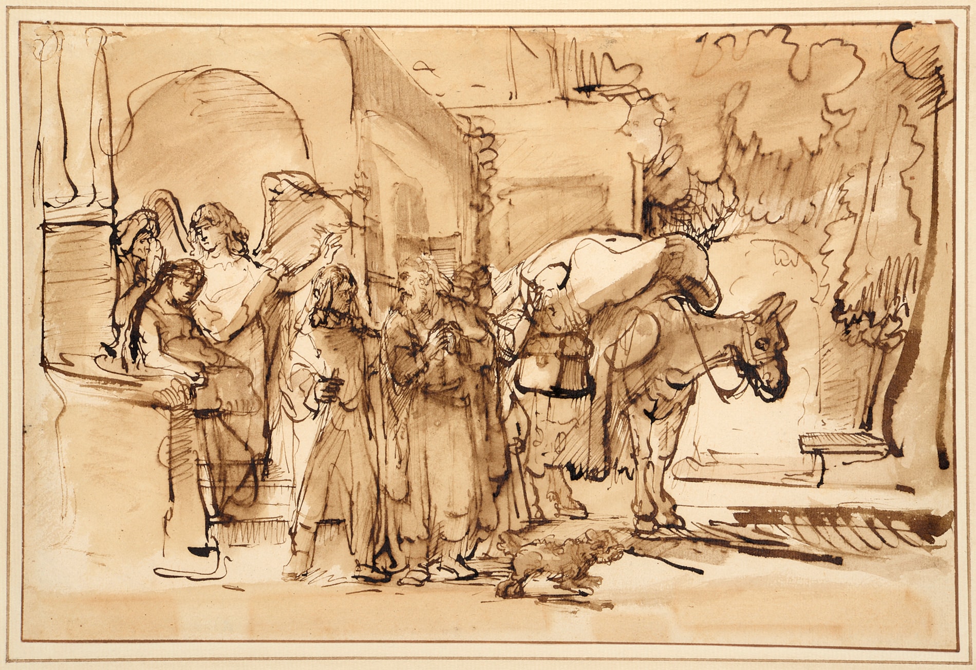 In his seminal 1957 study of the drawings of Fedinand Bol, Wilhelm Valentiner compared the present sheet in particular with a drawing of The Departure of the Prodigal Son, formerly in the Julius Weitzner collection in New York. As Valentiner points out, with reference to both the present sheet and the Weitzner drawing, ‘The young Tobias can be compared in pose to the prodigal son, while the expression of the woman comes as near to Rembrandt as only Bol could achieve. Characteristic of him are the angel and the two women in the doorway; the background with the restless curves in the left corner and the many divergent hatchings to the right and also the baroque forms of the building itself, with the shadows washed in bistre, recall the treatment of the drawing of The Prodigal Son. Both drawings belong to the best we know of Bol.’