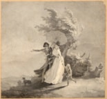 A student, albeit briefly, of the painter Joseph-Marie Vien, Philibert-Louis Debucourt was from an early age determined to make his mark as a genre painter. Agrée at the Académie Royale in 1781, in the same year that he married and obtained lodgings in the Louvre, Debucourt exhibited at the Salons of 1781, 1783 and 1785, becoming a full member of the Académie in 1786. His subjects tended towards charming and intimate depictions of domestic life; as one scholar has noted, ‘Scenes extolling the pleasures of family life abound in Debucourt’s oeuvre.’1 However, the early death of his wife in 1783, leaving behind a young son whom he needed to support, is thought to have led Debucourt to concentrate on his work as a printmaker, since the production of colour aquatints had the potential to earn him a greater income than his paintings. Debucourt’s colour prints of genre subjects of the 1780s were some of the most significant works in this new medium, and culminated in two major graphic works of Parisian genre subjects; the Palais Royal Gallery Walk and The Public Promenade. Until the turn of the century, Debucourt made engravings, often in colour, after his own paintings of genre scenes and portraits, but after 1800 was mainly engaged in reproducing the designs of other artists, such as Carle Vernet, which earned him a modest livelihood. Although he continued to show paintings at the Salons infrequently - in 1810, 1814, 1817 and 1824 - he never achieved much in the way of critical or financial success, and died in relative poverty.
