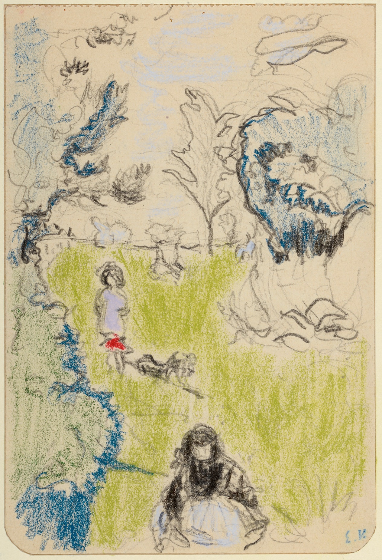 As a modern scholar has noted, ‘Vuillard was in many ways the supreme graphic artist among the Nabis. He drew throughout his life, indeed daily...’ From around 1900 onwards he used mainly pastel for his drawings, and came to master the subtlety and vibrancy of this challenging medium. In one of the first monographs on the artist, the critic and art historian Claude Roger-Marx wrote that, ‘Vuillard often found expression by means of pastels’, and he made more extensive use of the pastel medium than perhaps any French artist since Degas in the previous generation. Pastel was to become an essential part of Vuillard’s working process until the end of his career, and was used for landscape and figure studies, compositional drawings, still life subjects and as preparatory studies for portraits.