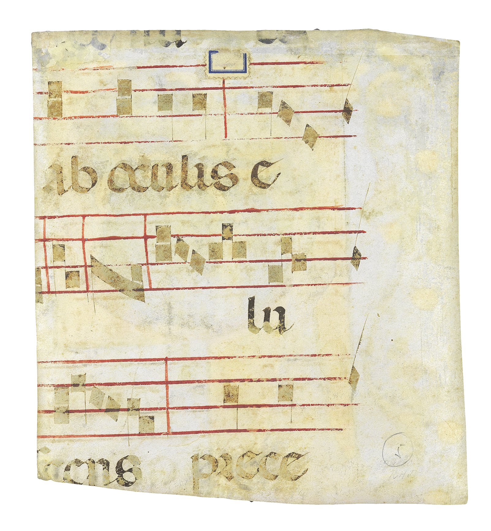 This historiated initial P was originally part of an antiphonary; a large choir book containing the sung parts - both text and music - of the Mass or Divine Office; a series of daily services performed by the clergy. Antiphonaries were usually very large volumes that could be propped up on easels or bookstands to enable the monks in the choir to read them from a distance. Other extant cuttings from the same volume show Dominican saints, which would suggest that the antiphonary was intended for a Dominican church or convent in Bologna.