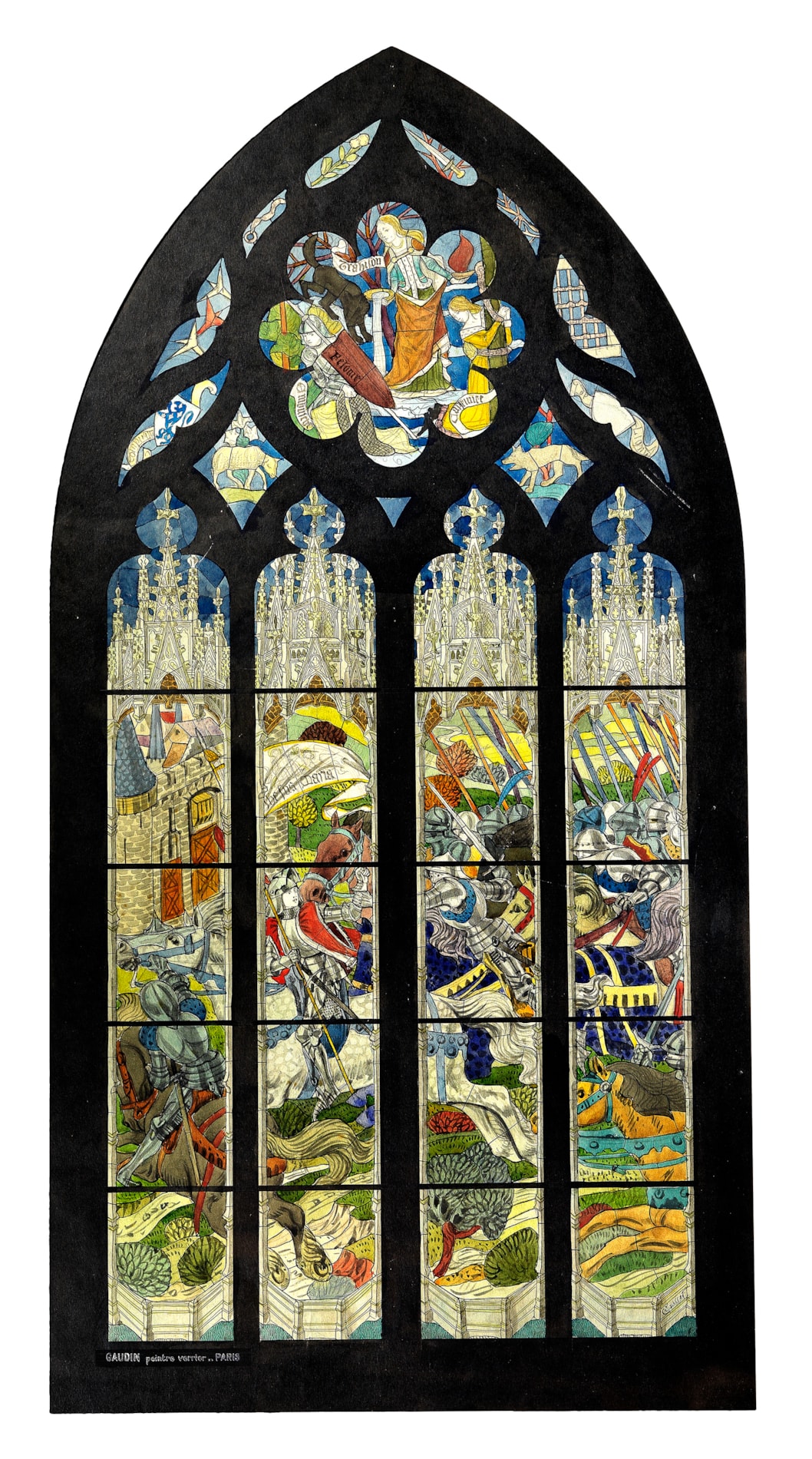 Inscribed GAUDIN peintre verrier – PARIS on a label pasted onto the lower left margin.