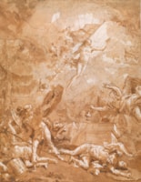 The compositions of the drawings of the ‘Large Biblical Series’ display the artist’s wide-ranging study of a variety of visual sources. Inspiration was derived from, among other sources, the Byzantine mosaics in the Basilica of San Marco in Venice and the extensive collection of 16th and 17th century prints kept in the Tiepolo studio, while Domenico also adapted motifs from the paintings and drawings of his father, and occasionally recycled images from his own work. Indeed, some aspects of the composition of the present sheet are found in an earlier drawing by Domenico of The Resurrection of Christ, of much smaller dimensions, which is today in a Swiss private collection5. As Knox noted of the artist, ‘his most extensive and perhaps his most remarkable work as a draughtsman...The Large Biblical Series is a summation in more ways than one. For the first time, Domenico draws on the full resources of the Tiepolo studio, his own visual memory, his folios of drawings, and the vast accumulation of drawings by his father...Even so, by far the greater part of these compositions are entirely original inventions.’