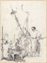 Tiepolo’s drawings include compositional studies for paintings and prints, drawings of heads, figure studies for large-scale decorations, landscapes and caricatures, as well as several series of drawings on such themes as the Holy Family. Many of these drawings were bound into albums by theme or subject, and retained by the artist in his studio as a stock of motifs and ideas for use in his own work, or that of his sons and assistants.