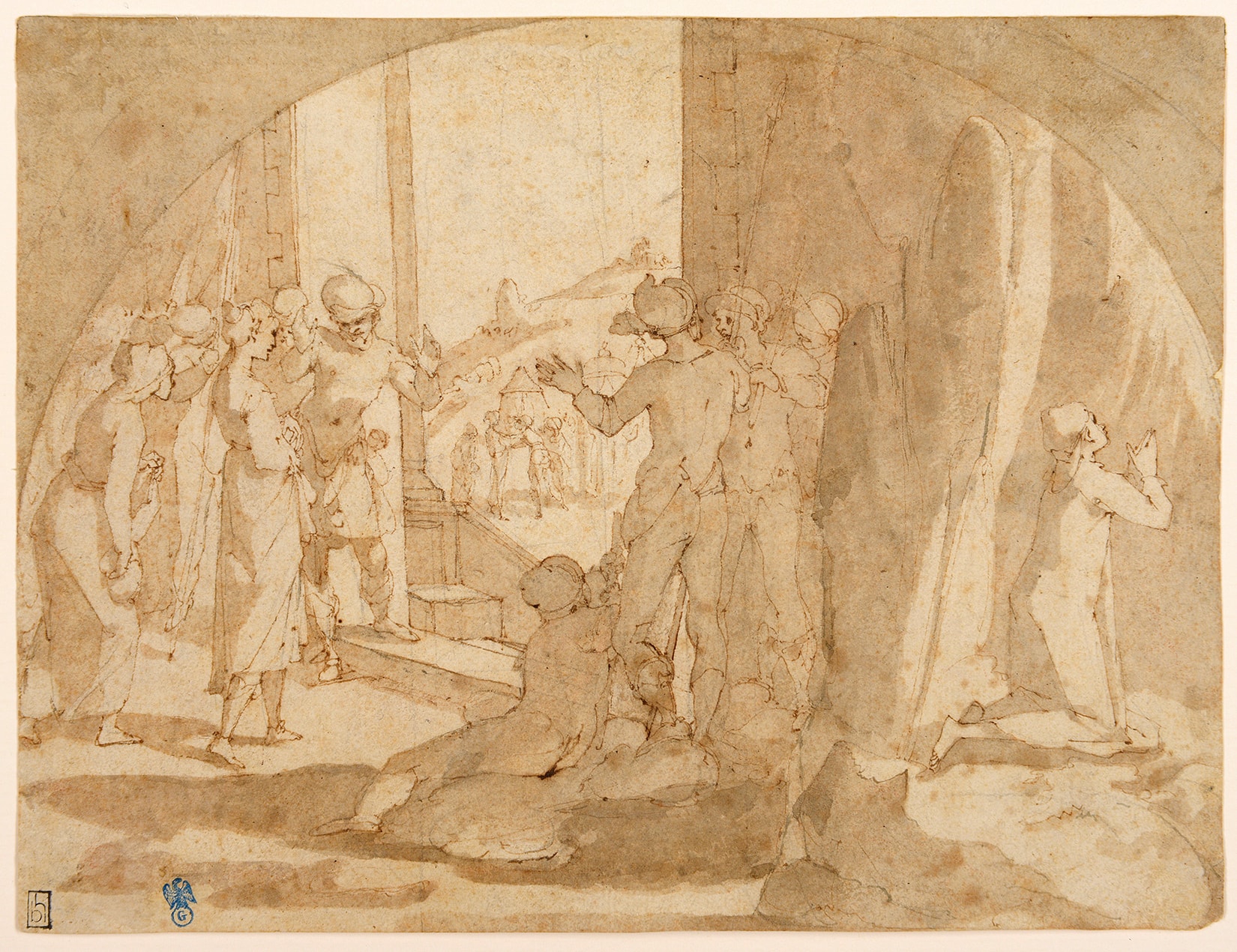 Andrea Boscoli trained in the Florentine studio of Santi di Tito and was admitted into the Accademia del Disegno in 1584. He visited Rome as a young man in the early 1580’s and, like many artists before him, avidly copied the frescoes of Polidoro da Caravaggio that decorated the facades of several palaces there. Between 1582 and 1600 Boscoli worked primarily in Florence, with brief stays in Siena and Pisa. His earliest known painting is the Martyrdom of Saint Bartholomew, painted in 1587 for the cloister of the Florentine church of San Pier Maggiore. He was also involved in the decorations for the apparati celebrating the marriage of the Grand Duke Ferdinando I de’ Medici to Christina of Lorraine in 1589.