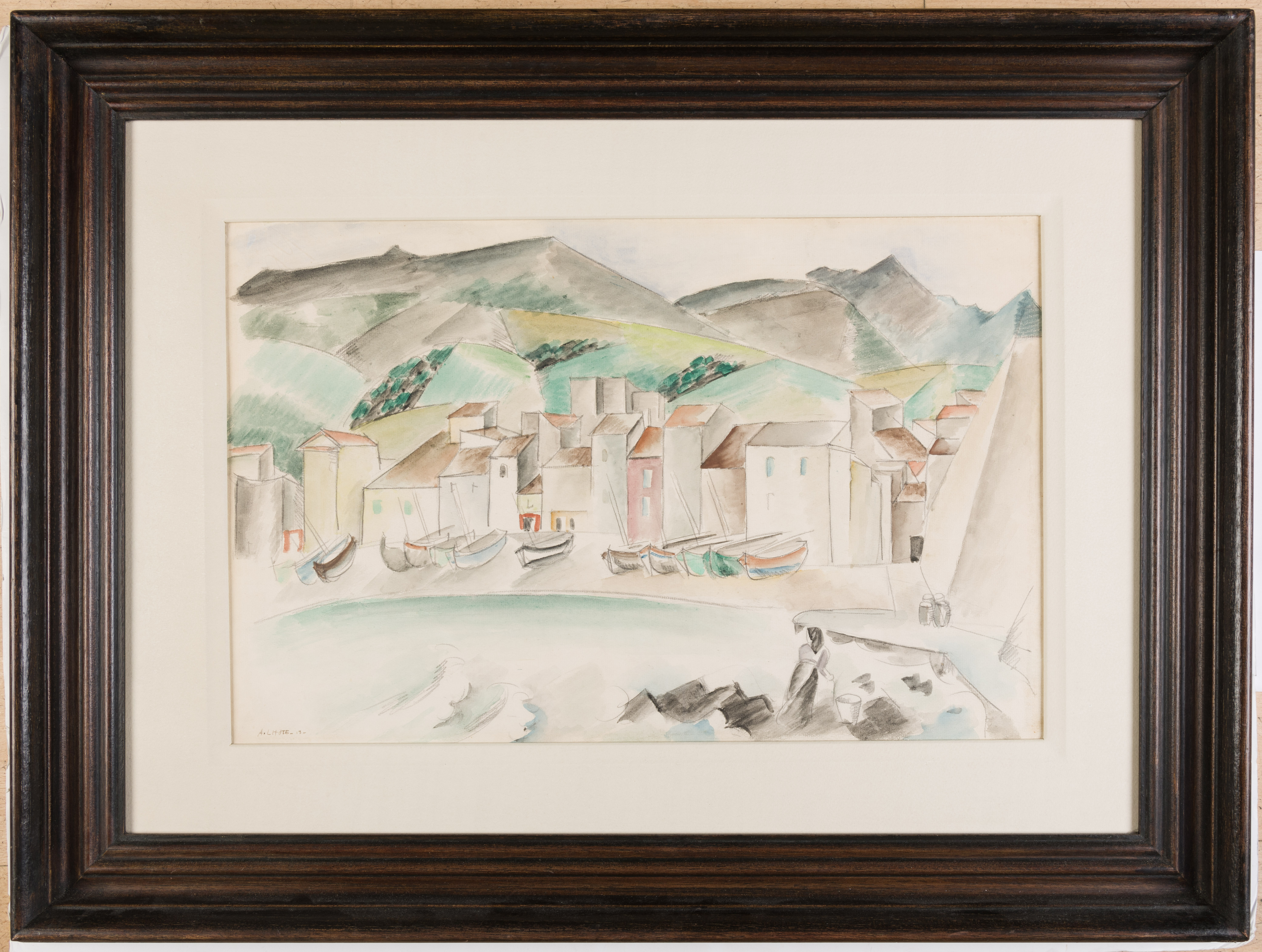 In the early part of the 20th century, the small Mediterranean port town of Collioure in France, very close to Spain, was a popular destination for artists such as Georges Braque, André Derain, Othon Friesz, Henri Martin, Paul Signac, Léopold Survage and, most notably, Henri Matisse. Lhote must have visited Collioure more than once, since he produced a handful of paintings of this picturesque Catalan fishing village, albeit each one different in composition from the present sheet. A painting of Collioure is in the Musée Fabre in Montpellier, while a different view of the port, dated 1917, was with the Marlborough Gallery in London in 1958 and was included in the Lhote retrospective exhibition in Paris that year. Another painting of Collioure by Lhote, datable to c.1920, was sold at auction in London in 1990.