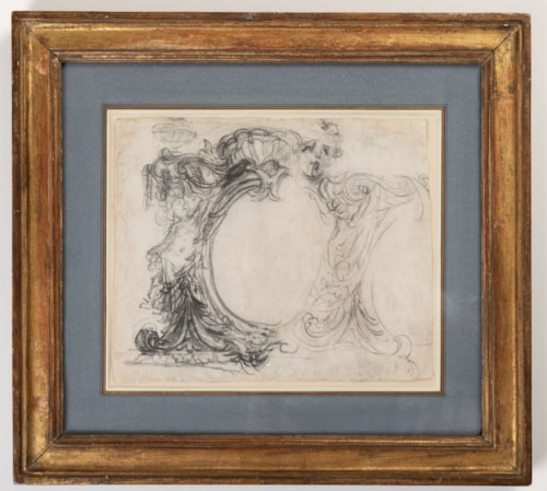 The present sheet may be compared to other drawings by Volterrano for decorative details and ornament, such as two sheets of studies for the design of a frame, sold alongside the present drawing at auction in London in 1980, and several of the drawings in the Kunstbibliothek in Berlin. The verso of the present sheet, drawn in red chalk, appears to show several designs for frames or cartouches, and may be compared with a drawing for an oval cartouche or frame which was on the art market in London in 2004 and is now in the collection of the National Gallery of Scotland in Edinburgh.