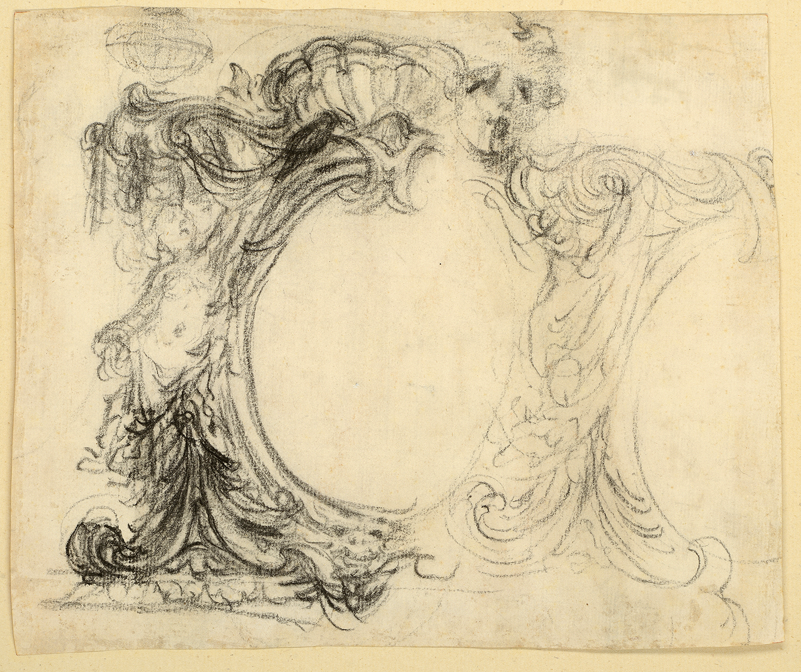 Study of Two Variant Designs for a Cartouche [recto]; Studies of Frames or Cartouches [verso]