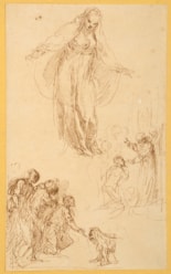 A Sheet of Figure Studies with the Virgin or a Female Saint, A Man Kneeling Before a Saint, and Several Figures Before a Lion