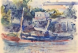 Watercolour over traces of a pencil underdrawing, drawn on a page from a small sketchbook. A faint sketch of boats in pencil on the verso. Numbered 19 in pencil at the lower right. 118 x 182 mm. (4 3/8 x 7 1/8 in.)