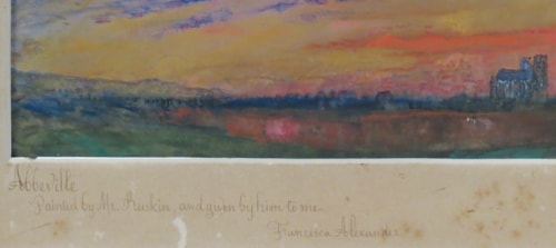 Inscribed Abbeville / Painted by Mr. Ruskin and given by him to me. / Francesca Alexander on the old mount.