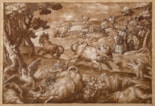 At around the same time that he was working on the Poggio a Caiano tapestries, Stradanus began developing the theme of hunting in a much more varied series of drawings for prints, which he continued to develop and refine for the remainder of his career. (Indeed, Stradanus produced drawings of hunt subjects well into the first years of the 17th century, when he was in his eighties.) Many of his drawings of hunting scenes were translated into engravings by members of the Galle family, the foremost print publishers in Antwerp. As Manfred Sellink has noted of these drawings, 'In style and technique Stradanus combines northern European and Italian influences - betraying both his Netherlandish roots and his professional career in Florence. Rather than emphasizing the linear qualities of his compositions, as most designers of prints tend to do, Stradanus concentrated on the pictorial qualities - using brush and wash to model the composition and all the figures. He was able to do so as he could trust the expertise of the Galle workshop - leading printmakers and publishers in Europe - to translate his designs into engravings of the highest quality.' Nearly a quarter of Stradanus's total output of prints was made up of hunting subjects.