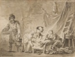 A finished watercolour of a similar domestic subject of a Russian family in an interior, though different in composition, is in the Musée Départemental des Vosges in Epinal. Also stylistically comparable is a pen and wash drawing, a study for the aquatint La Lampe Polonaise of 1771, that was on the art market in New York in 1965.