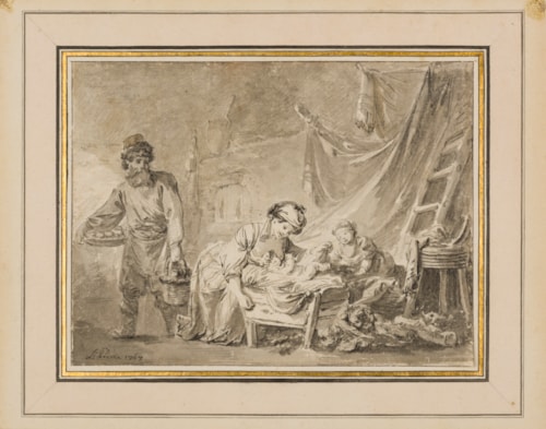Signed and dated 1767, the present sheet is a fine and charming example of the numerous genre scenes set in Russia that Jean-Baptiste Le Prince produced after his return to France. As Kimerly Rorschach has written of Le Prince, ‘the artist distilled his observations of Russia into a series of images which served him throughout his working life. Repeated in paintings, drawings, prints and tapestries, Le Prince’s images brought the exotic flavour of far-away Russia into the drawing rooms of many a fashionable Frenchman.’