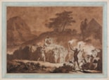 Dated 1772, the present sheet was drawn in Rome at the start of François-André Vincent’s period of study there at the Académie de France. As Jean-Pierre Cuzin has noted of this drawing, ‘This totally imaginary scene seems to represent a funeral procession, with a pyramid in the background at the right. The landscape here holds a prominent place. Note the audacity of the nocturnal representation, the energy and speed of the brush, the strong contrasts of shadow and light. The overall effect evokes some of the most beautiful achievements of Louis-Jean Desprez (1734-1804), a specialist in drawings of night effects. It should be noted, however that the Franco-Swedish artist [ie. Desprez]will not arrive in Italy until 1776, after having obtained the Grand Prix for architecture.’