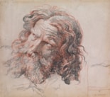 This is a study for the head of a kneeling figure of Widukind, the Germanic leader of the Saxons, near the centre of Henri Lehmann’s vast hemicycle painting of France under the Reign of the Merovingians and Carolingians is Reborn in Faith and Independence, painted between 1854 and 1856 for the domed ceiling of the throne room of the Palais du Luxembourg in Paris. In the painting, the pagan Saxon chieftain Widukind – Charlemagne’s main opponent during the wars between the Franks and the Saxons of the 8th century - is depicted to the right of the central cross, kneeling before a Frankish priest and being baptized into the Christian faith.
