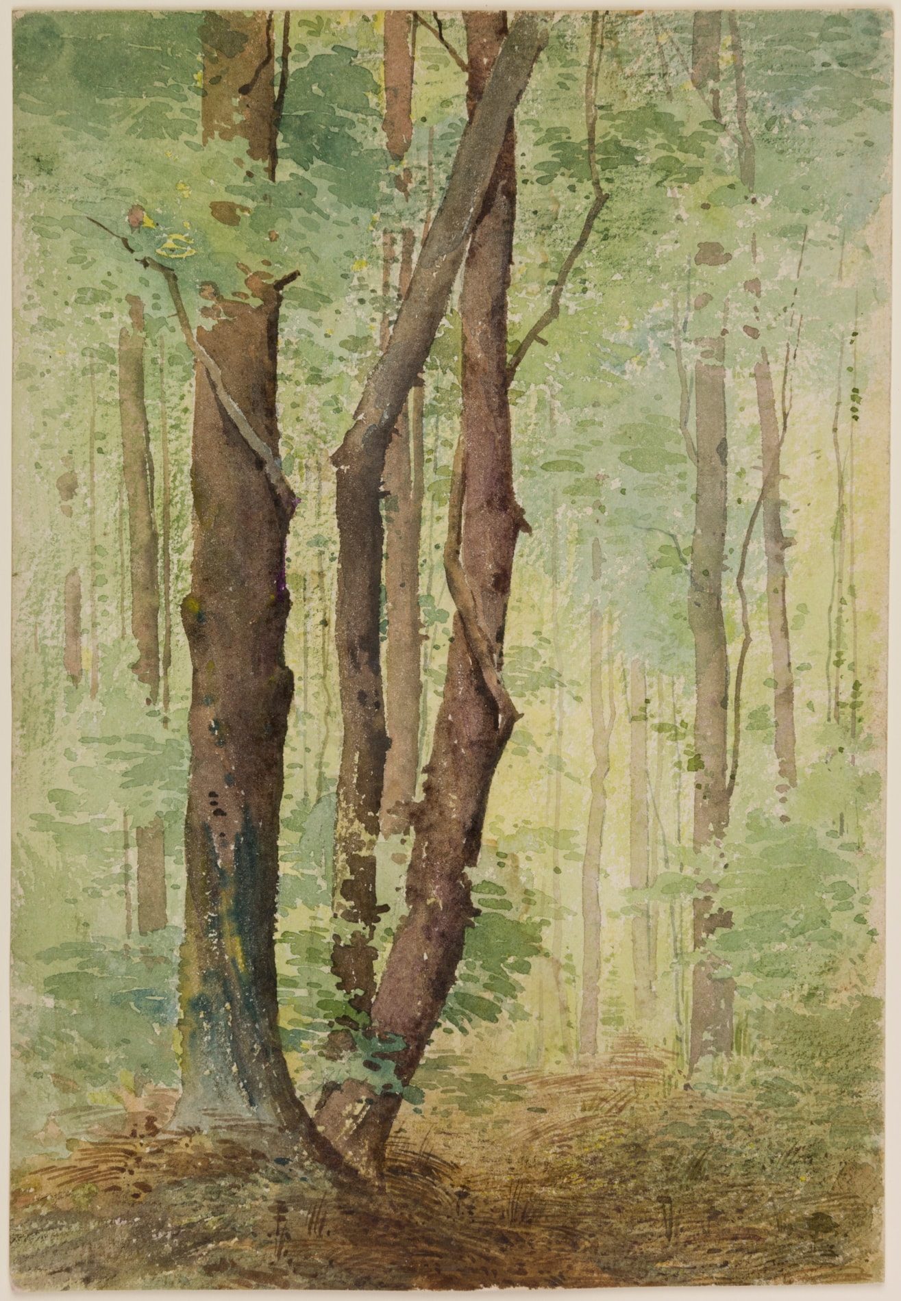 The present sheet is a fine example of Henri Adam’s watercolour technique. The way in which he depicts the forest, through a balance of lightly washed areas in the background to more developed trees in the foreground, reflects the way in which the eye absorbs the scene.