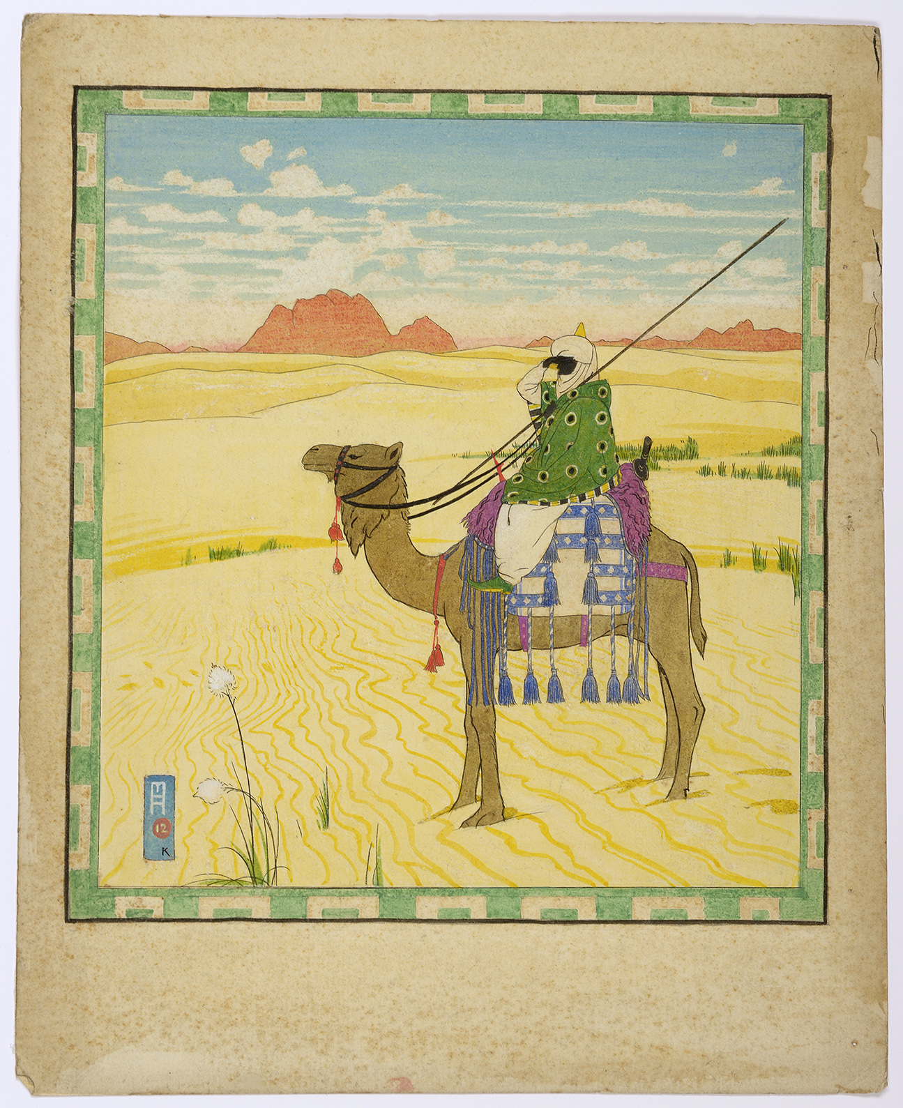 Armfield worked in collaboration on many of his book illustrations, most notably with his wife, the writer and artist Constance Smedley (1876-1941), whom he married in 1909. The duo worked in tandem on several projects, including such books as The Flower Book, Sylvia’s Travels, Wonder Tales of the World and The Armfields’ Animal-Book. The present sheet is a study for an illustration accompanying the short story ‘How the Camel Unbent’, included in The Armfields’ Animal-Book, authored by Constance Smedley Armfield and illustrated with eight colour illustrations by Maxwell Armfield. The book was published in 1922.