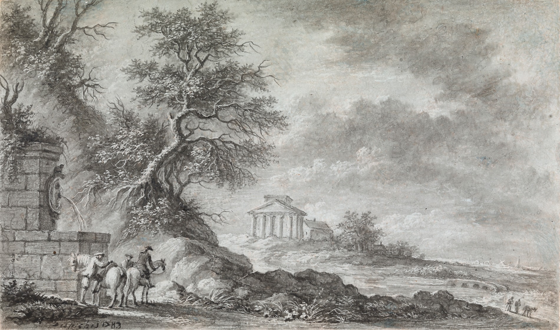 Aignan-Thomas Desfriches studied in his native Orléans before moving in 1733 to Paris, where he completed his artistic training in the studios of first Nicolas Bertin and later Charles-Joseph Natoire. He became the director of the drawing academy established under the patronage of the duc de Rohan-Chabot, but returned to Orléans at the end of the 1730s to take over his father’s spice importing business. He worked in Orléans for the remainder of his career, and founded the Ecole de Peinture, de Sculpture et d’Architecture d’Orléans in 1786. Active primarily as a landscape painter and draughtsman, Desfriches was strongly influenced by the Dutch masters of the 17th century. He first visited the Netherlands in 1753, and began collecting Dutch paintings and drawings soon afterwards, buying many works on a second trip in 1766. Indeed, he was particularly active as a collector, and by 1778 the inventory of his collection listed a total of 114 paintings and sculptures, as well as between two and three hundred drawings. A portion of his collection was given by his widow to the Musée des Beaux-Arts in Orléans in 1824.