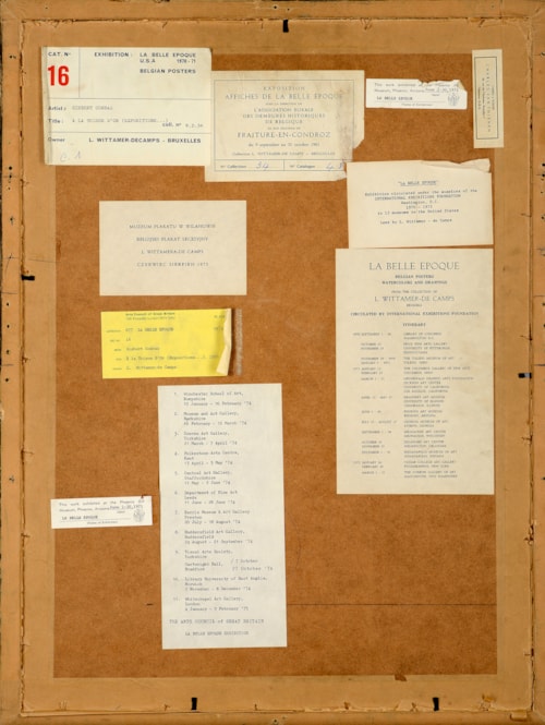 Impressions of the present poster are today in the collections of the Bibliothèque Royale de Belgique in Brussels and the Musée Communal d’Ixelles in Ixelles, as well as the Jane Voorhees Zimmerli Art Museum at Rutgers University in New Jersey.