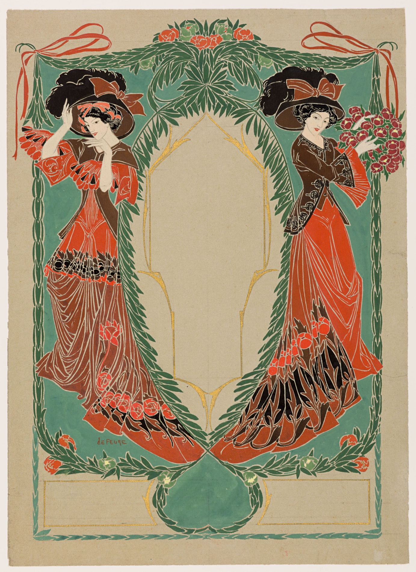 In addition to Les Modes and its sister publication Le Théatre, Georges de Feure contributed cover drawings for several other French journals, including Cocorico and Le Figare illustré (which devoted a special issue to the artist in February 1900), as well as the American magazine Dress, which was closely associated with Les Modes.