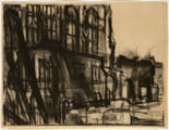 Bomberg had begun making these charcoal cityscape drawings around 1944, when he had served as a firewatcher in Kensington. As the artist’s biographer William Lipke has written, ‘While standing watch on long dark nights, he became more and more intrigued with the monumental buildings that had withstood many centuries. Deciding at last to begin that series of sketches that would record London’s historic monuments blackly silhouetted against the sky, he turned to his favourite drawing medium, charcoal. With its rich, velvety texture the artist drew out the firmness of the architecural forms, yet rubbed in the pervading darkness like a thin haze covering the inky night...This experience left an indelible stamp on his mind, and later he would return to examine the architectural heritage of London more closely after peace was restored.’