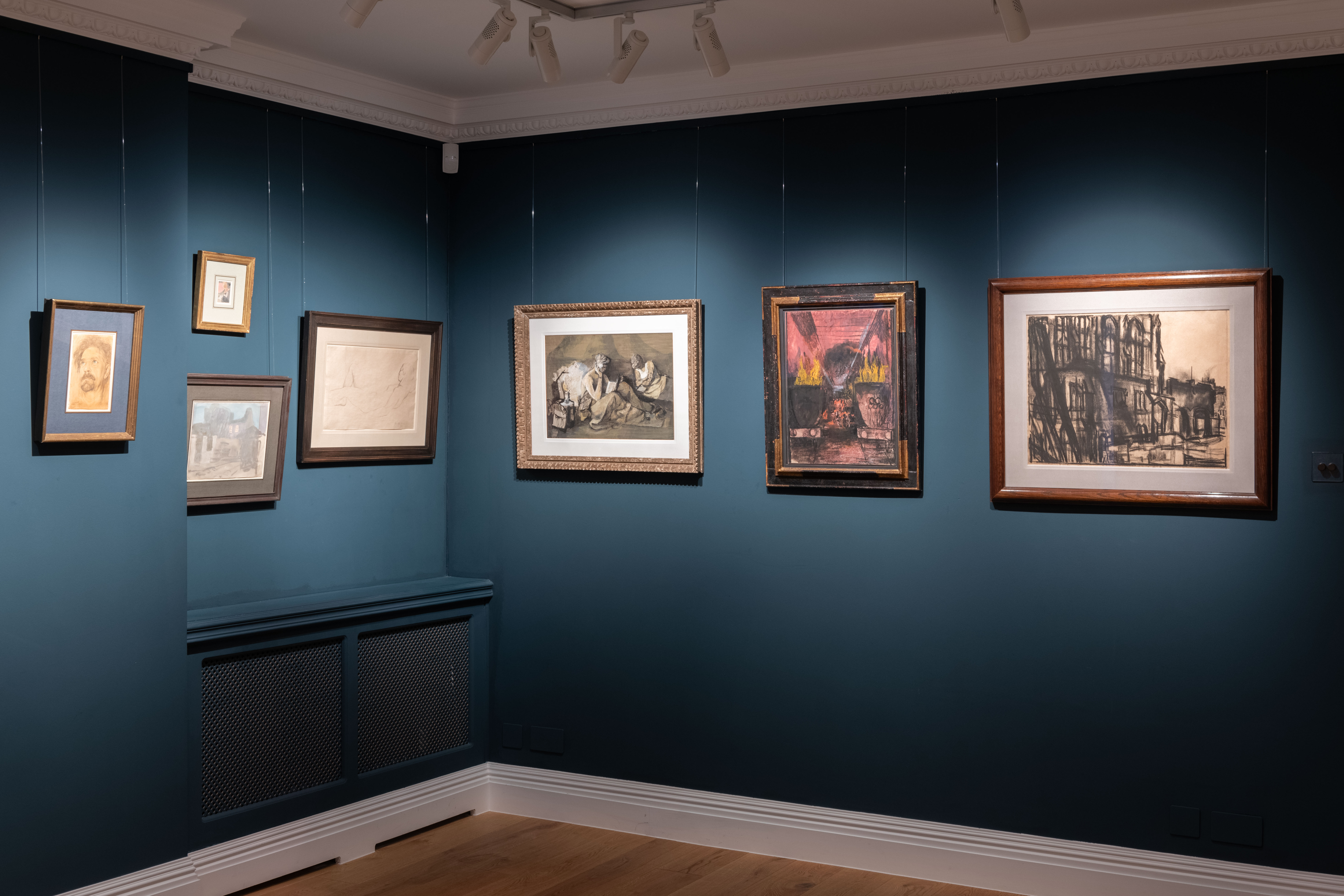 Bomberg had begun making these charcoal cityscape drawings around 1944, when he had served as a firewatcher in Kensington. As the artist’s biographer William Lipke has written, ‘While standing watch on long dark nights, he became more and more intrigued with the monumental buildings that had withstood many centuries. Deciding at last to begin that series of sketches that would record London’s historic monuments blackly silhouetted against the sky, he turned to his favourite drawing medium, charcoal. With its rich, velvety texture the artist drew out the firmness of the architecural forms, yet rubbed in the pervading darkness like a thin haze covering the inky night...This experience left an indelible stamp on his mind, and later he would return to examine the architectural heritage of London more closely after peace was restored.’