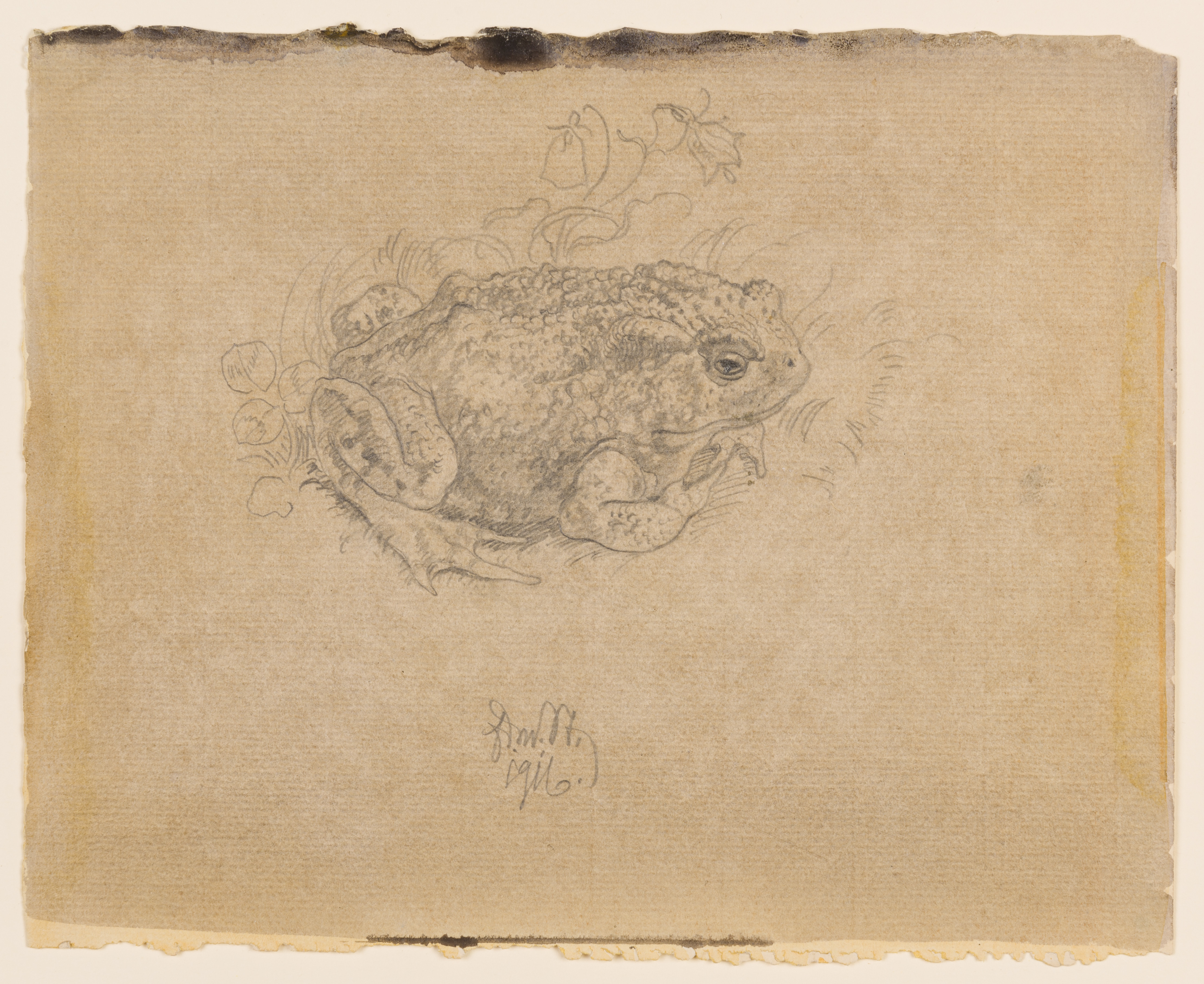 A closely-related pencil drawing of a toad by Edmund Steppes, dated October 1917 and showing more of a landscape setting, was recently on the art market in Germany.