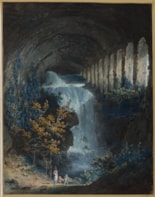 Born in Paris in 1774, very little is known about the life and work of French artist Chipart, including his first name, and he remains a mysterious figure today. He seems to have worked outside France for most of his career, and was in particular active for several years as a scenographer, costume designer and painter of theatrical scenery at the Royal Danish Theatre in Copenhagen, between c.1794 and c.1825. Chipart also appears to have travelled through Russia, Sweden, England and Germany, where he is thought to have lived for some time in Hamburg. Three gouache landscape drawings by Chipart, one of which is dated 1801, are today in the collection of the Statens Museum for Kunst in Copenhagen, while another example, a Landscape with Ruins, is in the Nasjonalmuseet in Oslo.
