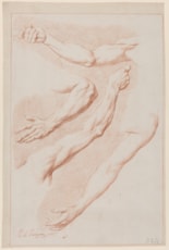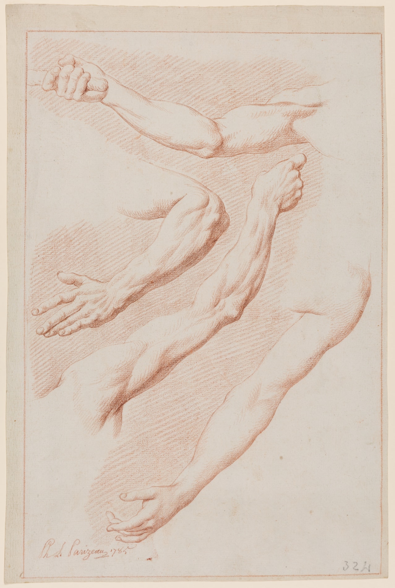 On e of a group of drawings which would appear to have been done by Parizeau as technical exercises, perhaps intended for the instruction of students. Two related drawings were exhibited with the present pair in New York in 1990 and are today in a private collection, while a horizontal study of hands and feet by Parizeau, signed and dated 1761, appeared on the London art market in 1979.