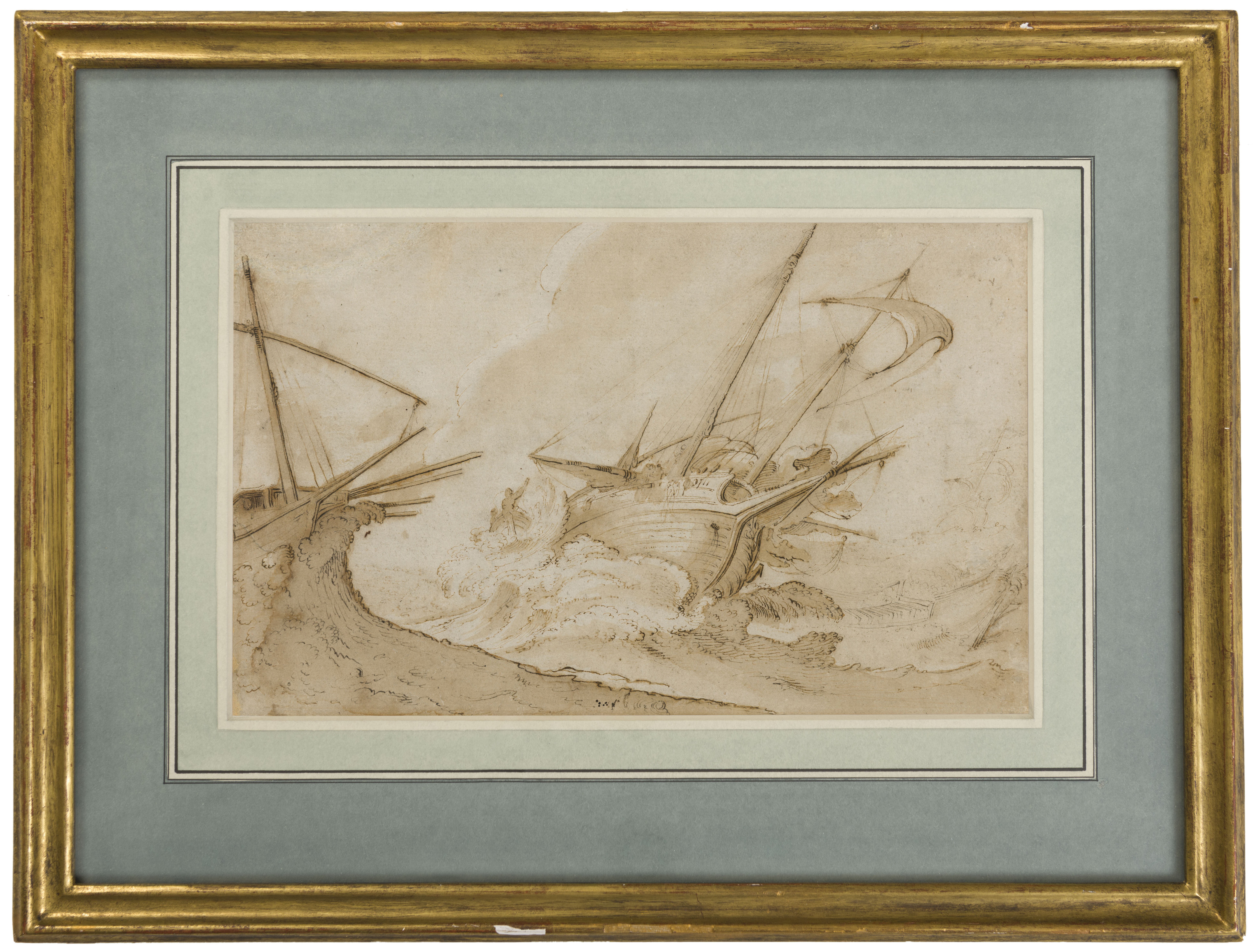 Both thematically and stylistically, the present sheet may be compared with a number of drawings by Filippo Napoletano, such as a large and impressive Naval Battlein the Louvre. Another drawing of ships on a stormy sea, more freely executed in pen and brown wash, is in the Art Institute of Chicago, while a study of a Shipwreck in the Albertina in Vienna may also be compared to the present sheet. Perhaps the closest compositional comparison, however, may be made – as Marco Chiarini has noted - with a drawing of Boats in a Storm in the collection of the Biblioteca Academiei Romî in Bucharest.
