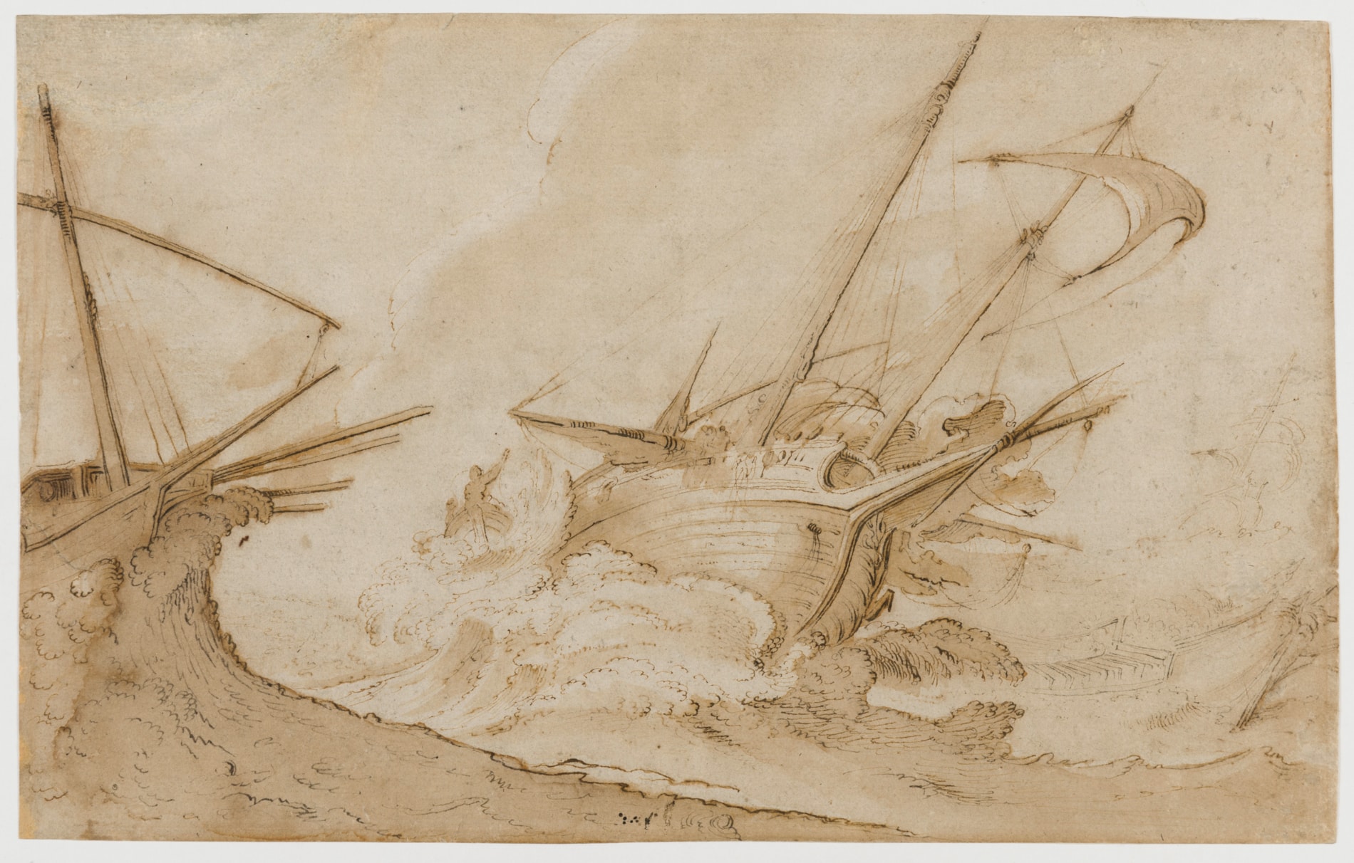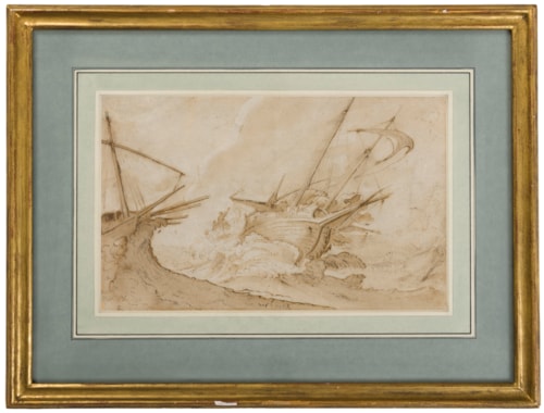 Both thematically and stylistically, the present sheet may be compared with a number of drawings by Filippo Napoletano, such as a large and impressive Naval Battlein the Louvre. Another drawing of ships on a stormy sea, more freely executed in pen and brown wash, is in the Art Institute of Chicago, while a study of a Shipwreck in the Albertina in Vienna may also be compared to the present sheet. Perhaps the closest compositional comparison, however, may be made – as Marco Chiarini has noted - with a drawing of Boats in a Storm in the collection of the Biblioteca Academiei Romî in Bucharest.