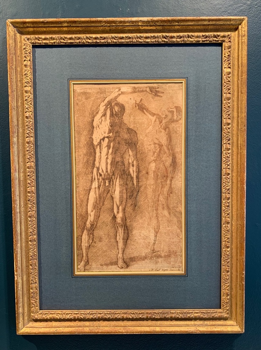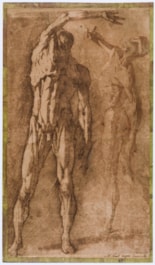Boscoli produced three other drawings after Francavilla’s scorticato statuette, from different angles. Two drawings in the Uffizi, both on blue paper, show the same figure from the right side and from the front, and strongly lit from the left. Monique Kornell has noted of the Uffizi drawings that ‘the evocative use of lighting, characteristic of the style of the Florentine draughtsman, matches the dramatic nature of the pose...The figure arches its back with its right arm flung across its body.’ Another drawing by Boscoli, showing the same figure from behind and drawn on blue paper, was with Stephen Ongpin Fine Art in 2015 and is today in an American private collection.