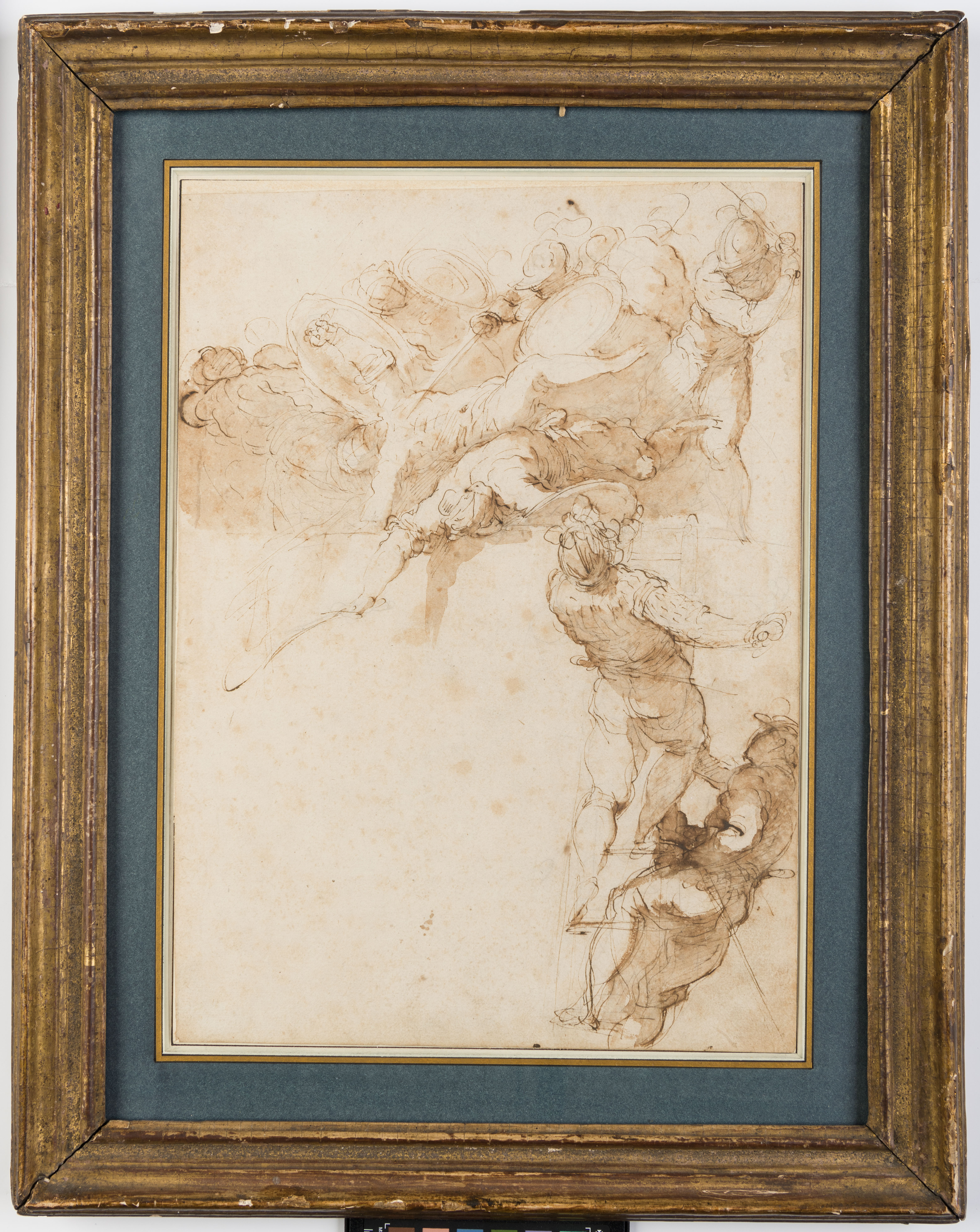 Among stylistically and thematically related pen and ink drawings by Palma Giovane is a Battle Scene in the Museo Correr in Venice, which has been related to the Siege of Constantinople in the Palazzo Ducale. The Correr sheet is part of an album of drawings by Palma Giovane which once belonged to the 18th century Venetian artist, engraver, art dealer and collector Count Anton Maria Zanetti. A similar arrangement of soldiers is also found in the upper part of a drawing of An Assault on a Fortress by Palma Giovane in the Louvre, which has been related to the lost Assault on the Fort of Barbagno in the Sala dello Scrutinio in the Palazzo Ducale.