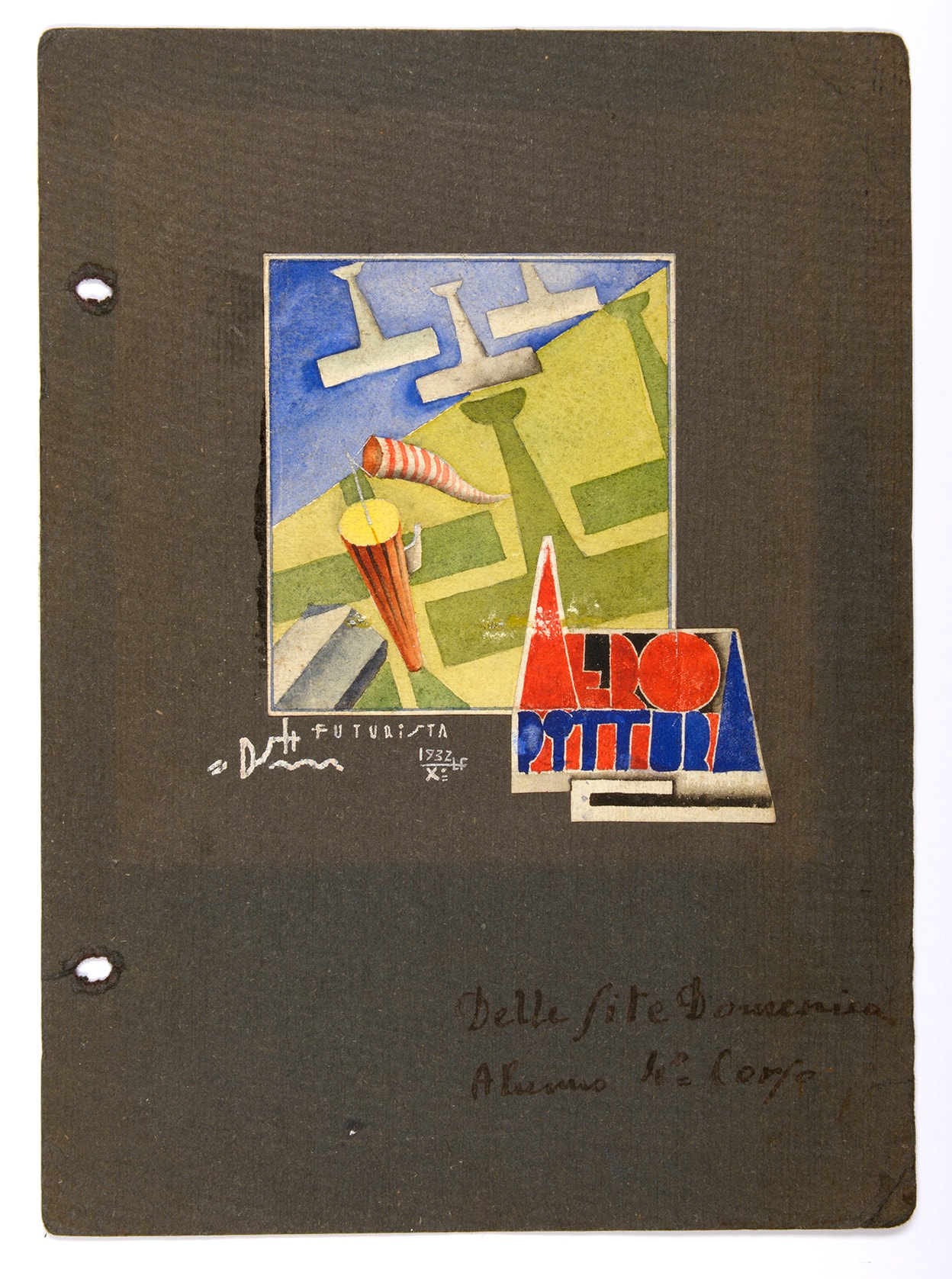 Titled AERO/ PITTURA on a separate sheet of paper cut out and pasted onto the lower right of the image.
