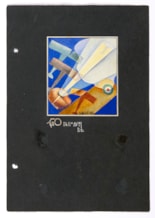 A slightly larger watercolour variant of this composition, horizontal in format and dated 1932, is in the Archivio Mino Delle Site in Rome. The present sheet is also closely related in composition to a large painting on panel by Delle Site, entitled Il pilota aliluce, which is dated 1932.