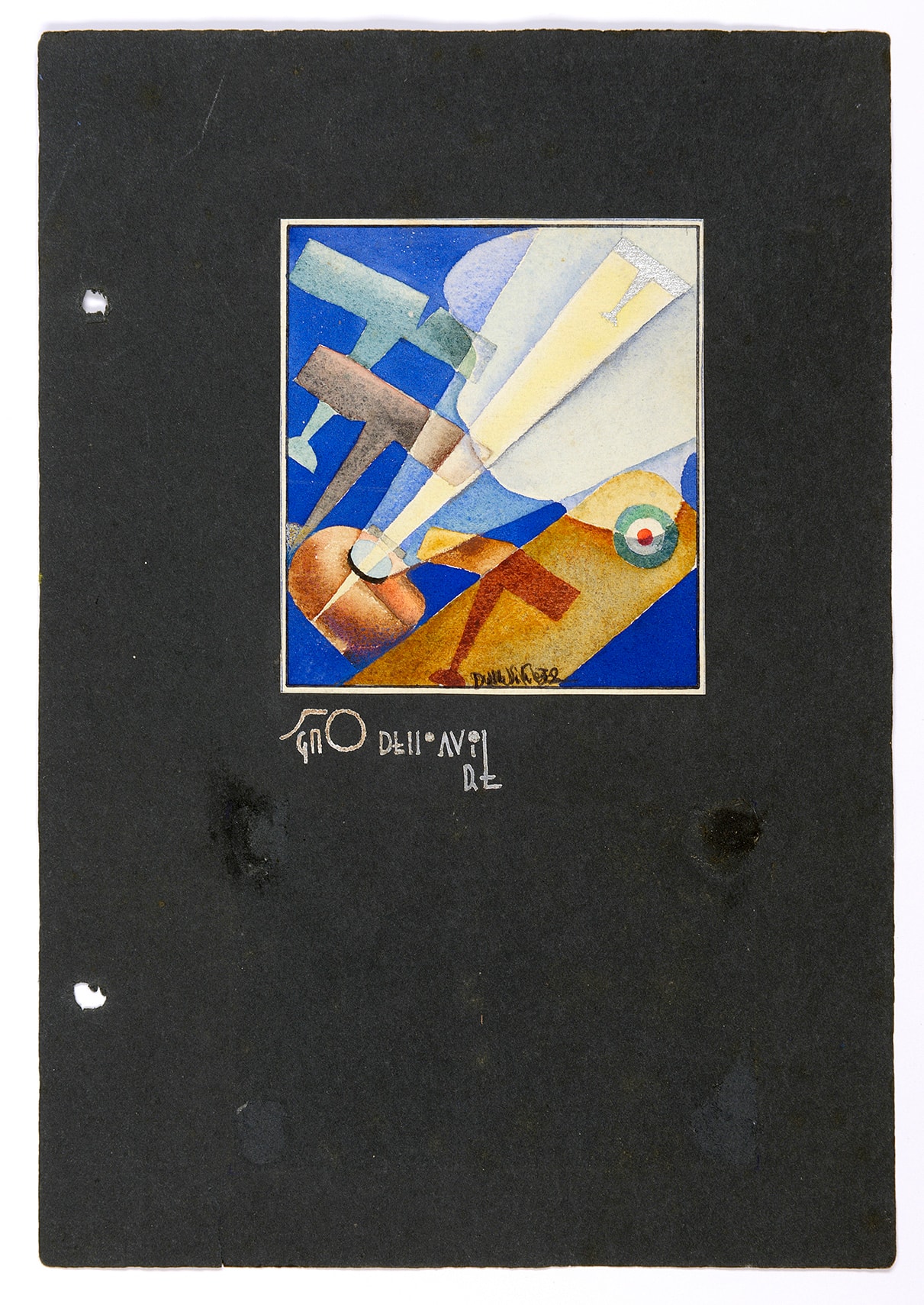 ‘An offshoot, or rather a metamorphosis, of Futurism, Aeropainting was the artistic reflection of the passion for flying which swept Italy in the 1930s, during the years of the great feats achieved by [Francesco] De Pinedo, [Italo] Balbo, [Arturo] Ferrarin, [Umberto] Maddalena and many other pilots, dizzingly celebrated in these swirling, booming canvases…Despite various premonitory hints in the form of isolated pictorial allusions, it was not until the end of the 1920s that the idea of Aeropainting moved in from the periphery to become the true heart, engine and, not long afterwards, also the new face of Futurism, almost twenty years after the publication of its founding manifesto.’ As the artist Gerardo Dottori noted, in the catalogue of an early exhibition of Futurist aeropainting held in Milan in 1931, ‘Aeropainting doesn’t so much mean inserting new figurative elements in painting – propellers, airplanes, atmosphere and so on – as giving painters new, broad-ranging possibilities of inspiration.’