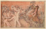 This is a preparatory study, with several differences, for one of Charles Sargeant Jagger’s earliest significant works; a bronze bas-relief of Cathal and the Woodfolk produced in 1914 while he was a student at the Royal College of Art. The relief was shown at the summer exhibition at the Royal Academy in May 1914, shortly before the sculptor won the Rome prize. A cast of Cathal and the Woodfolk is in the collection of the Victoria and Albert Museum, while another bronze cast of the relief is today in a private collection. A terracotta version of the composition was purchased directly from Jagger in March 1914 by Calouste Gulbenkian and is now in the Gulbenkian Museum in Lisbon, while two plaster versions are known; one from the collection of the British School in Rome that was sold at auction in 1987, and the other, which Jagger gave to his teacher at the Royal College of Art, Edouard Lanteri, that was sold at auction in 1992.