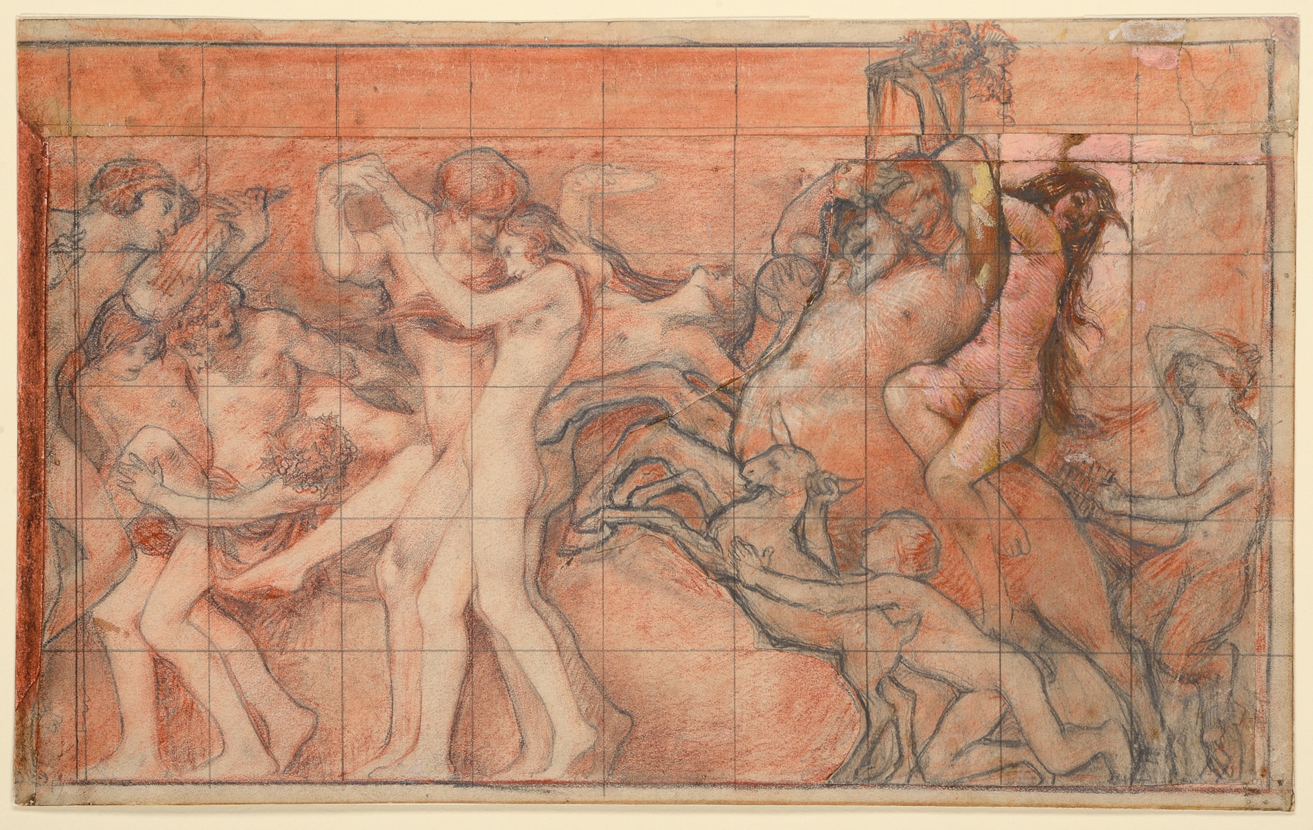 Squared for transfer in pencil, and with framing lines in pencil.
