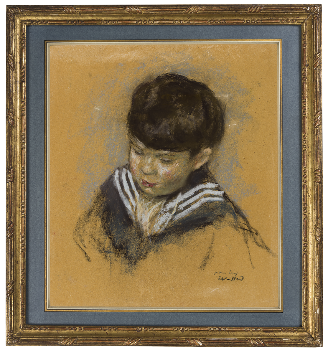 The subject of this charming portrait, executed in 1915, is Jean Reiss, a nephew of Vuillard’s close friend and muse Lucy Hessel. Depicted wearing a marinière, or sailor suit, the young Jean appears lost in thought, and oblivious to the artist drawing him. Another pastel portrait of Jean Reiss of the same date but of somewhat smaller dimensions, is in a private collection in Canada.