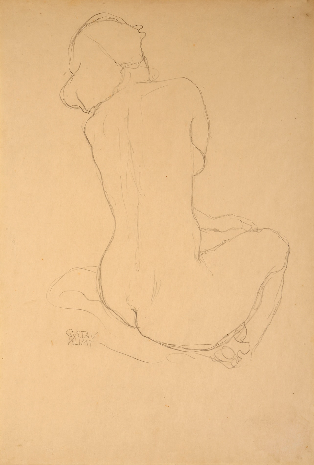 Gustav Klimt was one of the foremost draughtsmen of the early 20th century. Over four thousand drawings by him are known today, the vast majority of which are drawn in black chalk or pencil, and occasionally in coloured pencils, as well as, more rarely, pen and ink. Many more drawings have been lost, however; the artist is known to have often thrown away his drawings, while some fifty sketchbooks were destroyed in a fire in 1945. Klimt regarded his drawings purely as working studies, and thus never sold them, although he would occasionally give some away. When a sheet left his studio in this way he would invariably sign it, but otherwise he rarely signed his drawings.