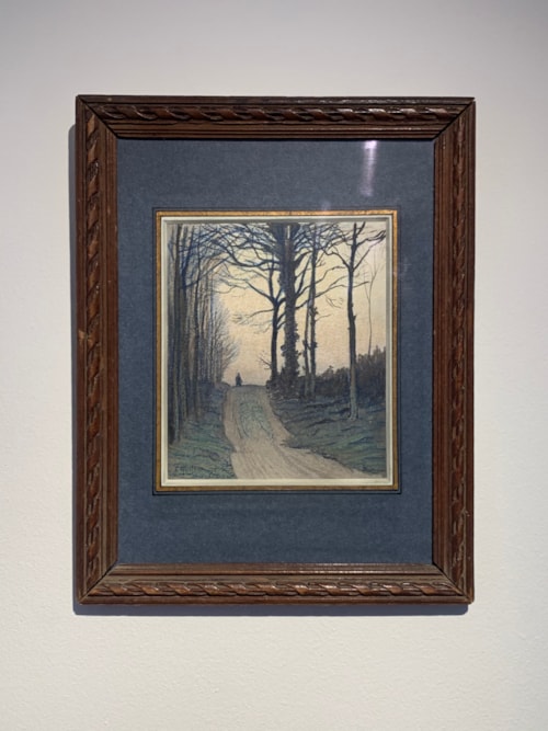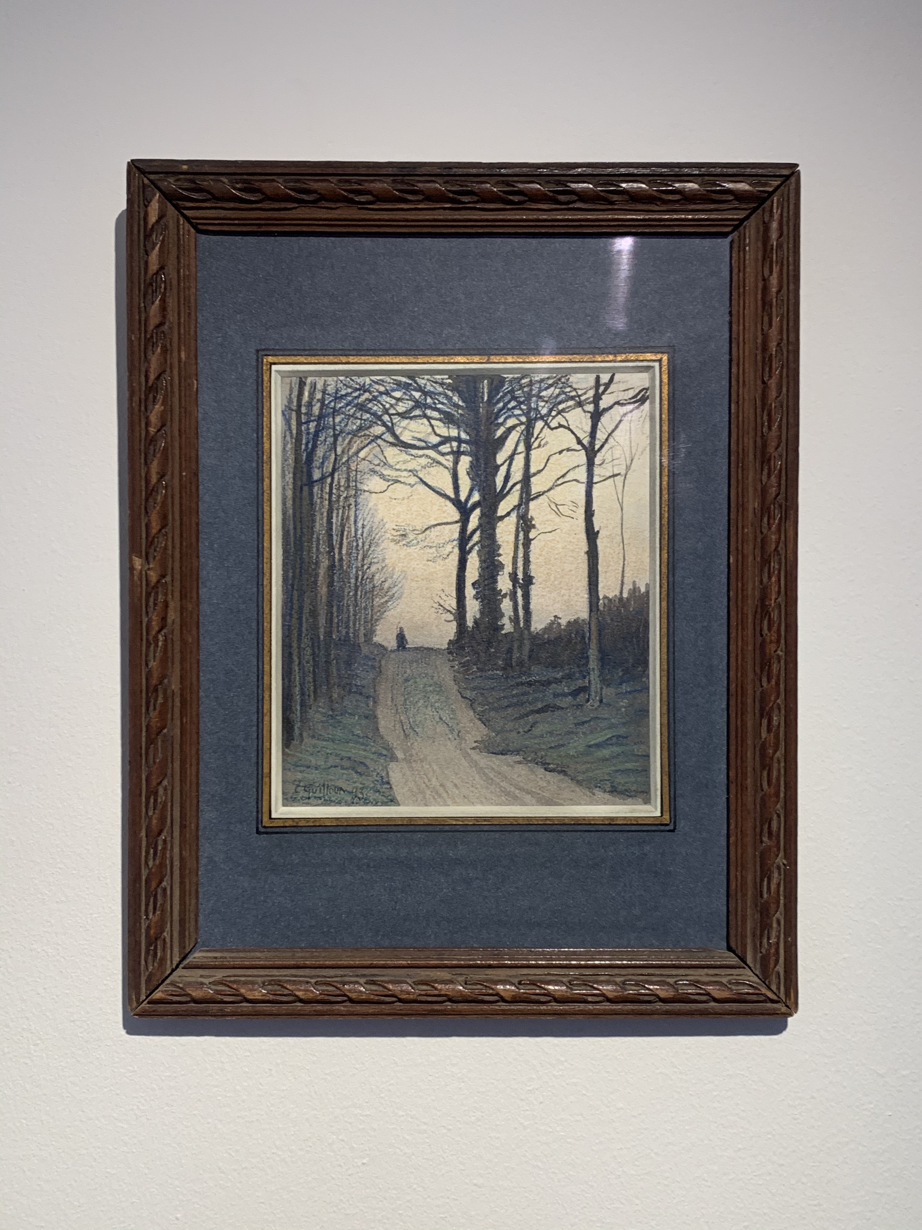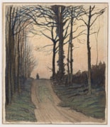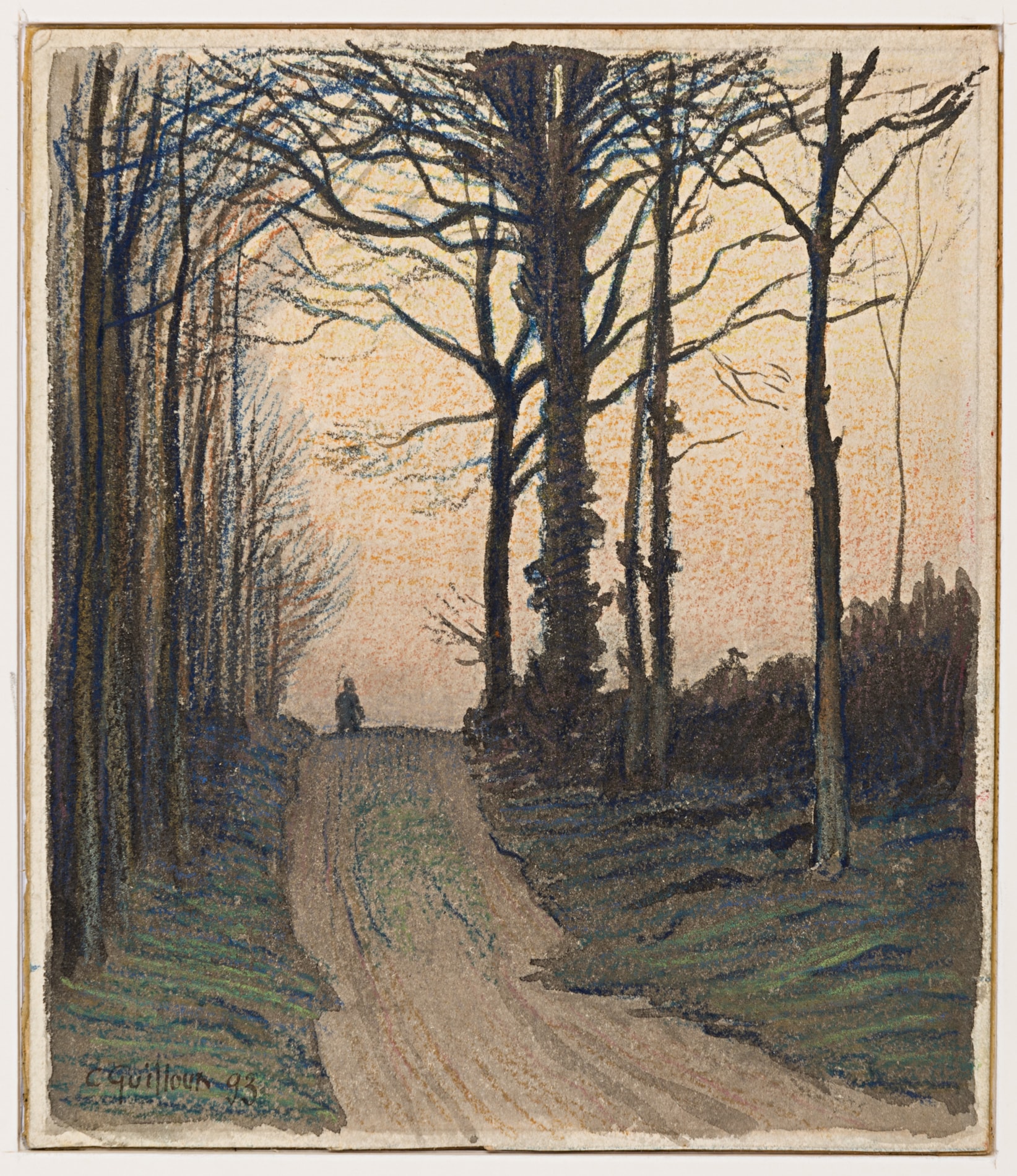 Charles Guilloux’s works on paper are characterized by the same atmospheric effects and somewhat elegiac quality of his paintings, as well as a confident handling of pencil, watercolour and pastel, sometimes using all three at once, as in the present sheet. Dated 1893, at the beginning of the artist’s independent career, this fine autumn landscape evinces an air of mystery and melancholy that is a recurring feature of Guilloux’s distinctive oeuvre.