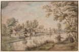 A Wooded Landscape with Houses Seen Across a River