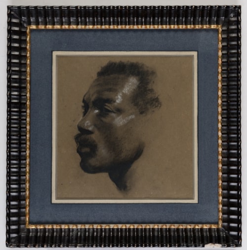 This charcoal drawing may be dated to c.1912-1913, and depicts one of the artist’s first black models, identified only as ‘Billy’ in another drawing exhibited at the Modern Society of Portrait Painters in 1913, where it was shown alongside a small bust-length painting of the same sitter, now in a private collection. Both the drawing and the painting of ‘Billy’ - the first in a long series of depictions of black men by Philpot - were purchased at the exhibition by the politician and art collector Sir Philip Sassoon, who later commissioned a portrait from the artist. A powerful charcoal figure drawing of a standing male nude of c.1913, today in a private collection, may also depict the same model.