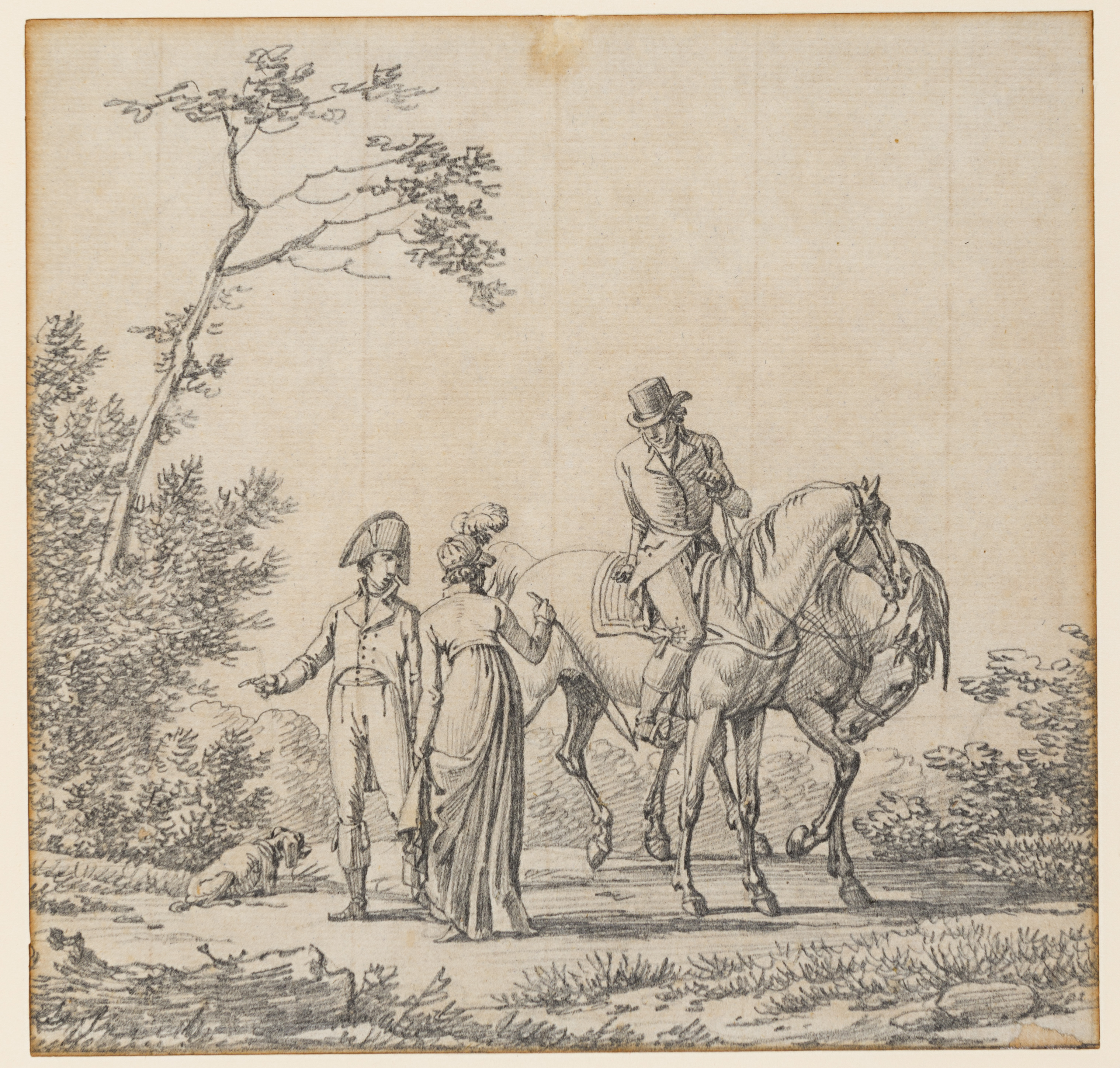 An unknown (19th century?) French auction, as lot 263 (‘Swebach…Amazone et Cavalier. Dessin à la mine de plomb.’)