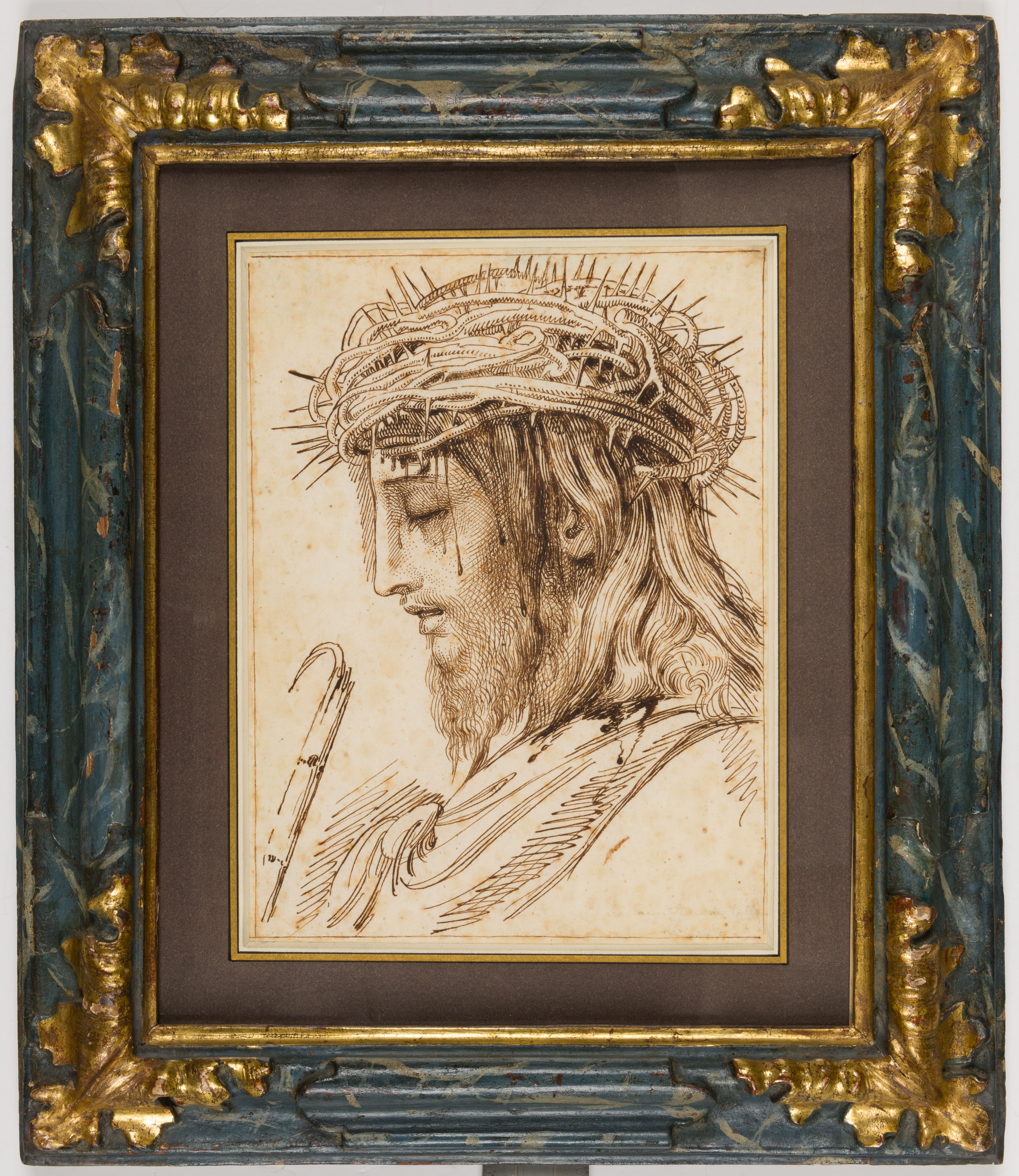 A preparatory study for the head of Christ in one of Luigi Sabatelli's etchings of the Via Crucis; a series of prints of the Stations of the Cross that were widely disseminated throughout Tuscany. The series was designed by Sabatelli in 1795 and etched by Giovanni Battista Cecchi, and was published in 1800.